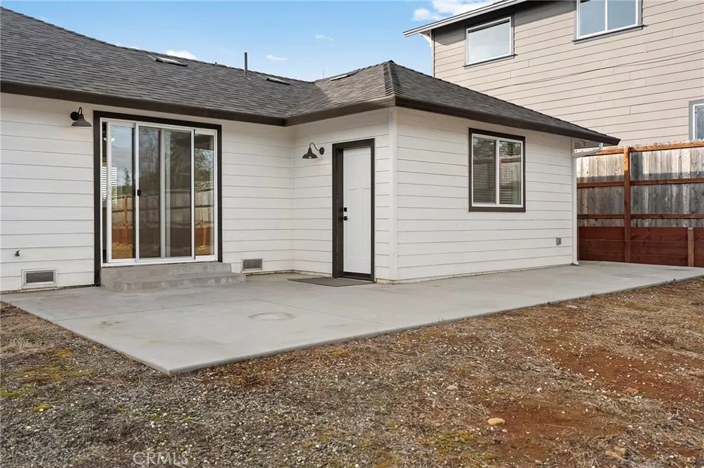 Recently built charming custom home in the heart of all that Paradise has to offer. This 2 bedroom, 2 bath home is filled with thoughtful upgrades and inviting spaces. The kitchen features solid wood cabinetry, solid surface quartz countertops, upgraded appliances, a pantry, and a beautiful plant window over the sink that frames the fully fenced backyard. Enjoy casual dining at the breakfast bar as well as a spacious dining area that is perfect for everyday living and entertaining. You’ll be welcomed by a darling front porch complete with a porch swing—an ideal place to relax and enjoy the neighborhood. The oversized garage offers plenty of space for a workshop, exercise area, or additional storage. Both bedrooms are generously sized, with the primary suite featuring a private en suite bath. The bathrooms continue the theme of quality finishes found throughout the home, and both bedrooms offer ample closet space. Step outside to the oversized back patio, creating a great space for outdoor dining, entertaining, or simply enjoying peaceful evenings at home. The fully fenced backyard offers privacy and room to garden, play, or relax. Located in lower Paradise, this home offers convenient commuting to Chico and Oroville and is near parks and the new Paradise Elementary School scheduled to open next school year. A wonderful place to call home—you’ll be proud to own this charming custom home with beautiful upgrades throughout.