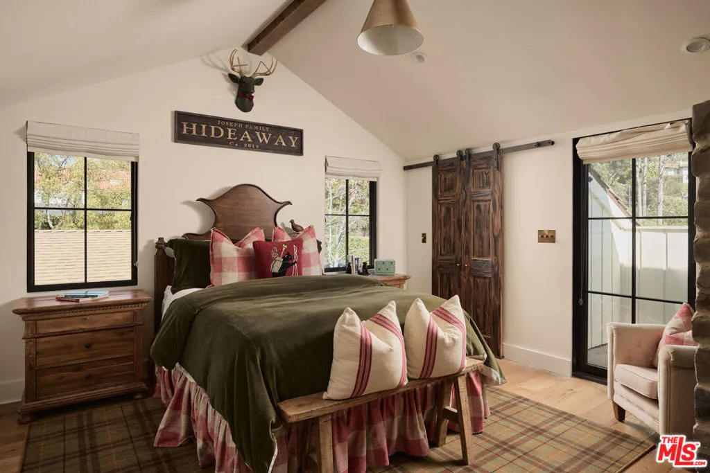 Welcome to this picture-perfect country farm house on an idyllic cul-de-sac, beautifully remodeled with moments tastefully curated for savoring all of life's most wonderful comforts and pleasures. The limewashed tumbled brick facade is complemented by rustic lighting, exposed beams, a barn-style garage door, and porch swing set amidst manicured landscaping. Through the elegant arched glass-paned front door, discover wide-plank wood floors, lofty vaulted ceilings, and organic materials. With organization and space-saving top of mind, every section is thoughtfully optimized. The prize of the foyer is a quaint temperature-controlled under-stair wine store, encased in glass with an old-town feel. The delightful kitchen includes a large island with farm sink, Viking cooktop with hood and pot filler, Miele espresso, custom paneled refrigerator, bread box, and pantry, all accented by brass deVOL Kitchens hardware and fixtures. Nearby, enjoy family gatherings in the sunlit dining area. The European ski lodge-inspired primary suite includes an antique Tuscan farmhouse stone accent wall with fireplace, vaulted ceilings, plumbed coffee system, beverage refrigerator, and sitting area. Its en-suite bath is appointed with a dual-sink vanity, separate soaking tub, oversized rainwater shower, and bay window ledge, while the custom walk-in closet features numerous built-ins. The family room opens to the outside via sliding pocket doors, perfect for indoor-outdoor flow and an al-fresco ambiance. There is also a den/gaming lounge with a speak-easy-style bar as well as a media/television room. Secondary bedrooms and bathrooms are also well-done and light-filled, and they are even equipped with charming day swings for the young at heart. The finished attic has been transformed into a secret hideaway for story time and sleepovers! Modern conveniences and fine details found throughout include authentic French oak floors imported from the Lorraine region, all century-old solid wood beams, Forbes & Lomax switch plates and toggles, and five HVAC systems for optimum climate management. In the backyard, roam and play on the grassy lawn or relax on the sprawling patio. If desired, there is also room for a pool. This fantastic lower Nichols Canyon location in the Hollywood Hills is central to all, close to film studios and just moments to hiking trails, iconic landmarks like the Hollywood Bowl, the Valley, downtown LA, and the Westside.