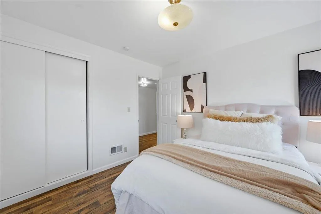 Step into a world of modern elegance in this beautifully appointed residence, where an open-concept design and airy light wood flooring create a bright, seamless flow for daily living. The heart of the home is the sophisticated kitchen, meticulously designed with crisp white Shaker cabinetry, a textured tile backsplash, and a stainless steel gas range with a professional vent hood. An expansive center island, illuminated by chic pendant lighting, offers a breakfast bar that serves as the perfect gathering spot for entertaining. Private quarters are equally impressive, highlighted by a grand primary suite that features a graceful arched entry and a dedicated sitting area, offering a true retreat within the home. The spa-inspired bathrooms showcase modern luxury with double vanities, sleek integrated sinks, stone-look countertops, and expansive wall-to-wall mirrors. enhanced by a versatile home office and recessed lighting throughout, this home combines style and function in a quiet, established neighborhood near top-rated schools and shopping.