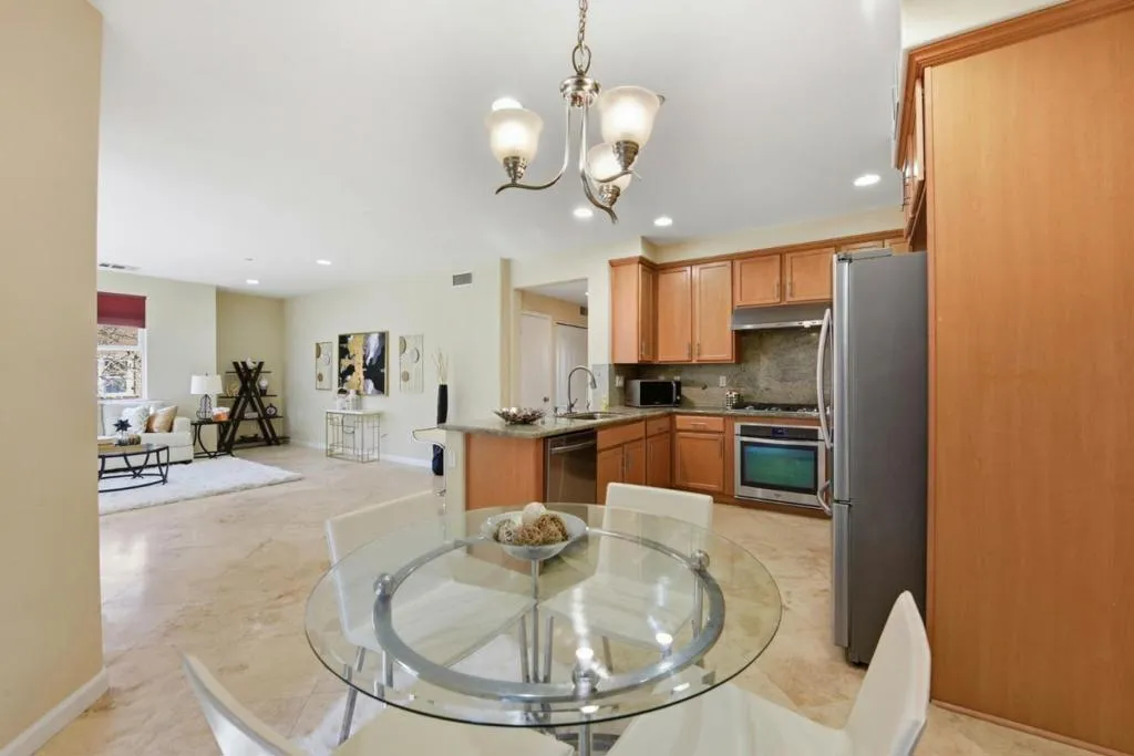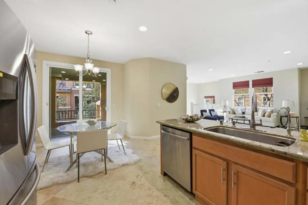 Location Location Location...Charming 2-story end unit townhome located at the heart of Mission San Jose School District. Friendly and Family oriented neighborhood, Spacious 1,556 sqft of living space with 3 bedrooms, 3 bathrooms and an open floorplan. One bedroom and full bathroom located downstairs. - Kitchen with stainless steel appliances and granite countertops open to the family room and dining area leading to a private balcony. - The primary bedroom includes an ensuite bathroom with dual vanity sinks, an enclosed shower/tub and a walk-in closet with custom shelving. - Laminate and travertine floors throughout - In-unit laundry closet upstairs with washer/dryer included Side-by-side 2 car garage with ample built-in cabinets - EV charger and water softener. - Great community with children's play area. - Desirable location - near the famous Mission Peak trail, and Mission San Jose Historic Museum. Commute-friendly, easy access to 680/880/238, and Fremont/Warm Springs BART. Near shops, restaurants, award-winning Mission San Jose schools and Ohlone College!