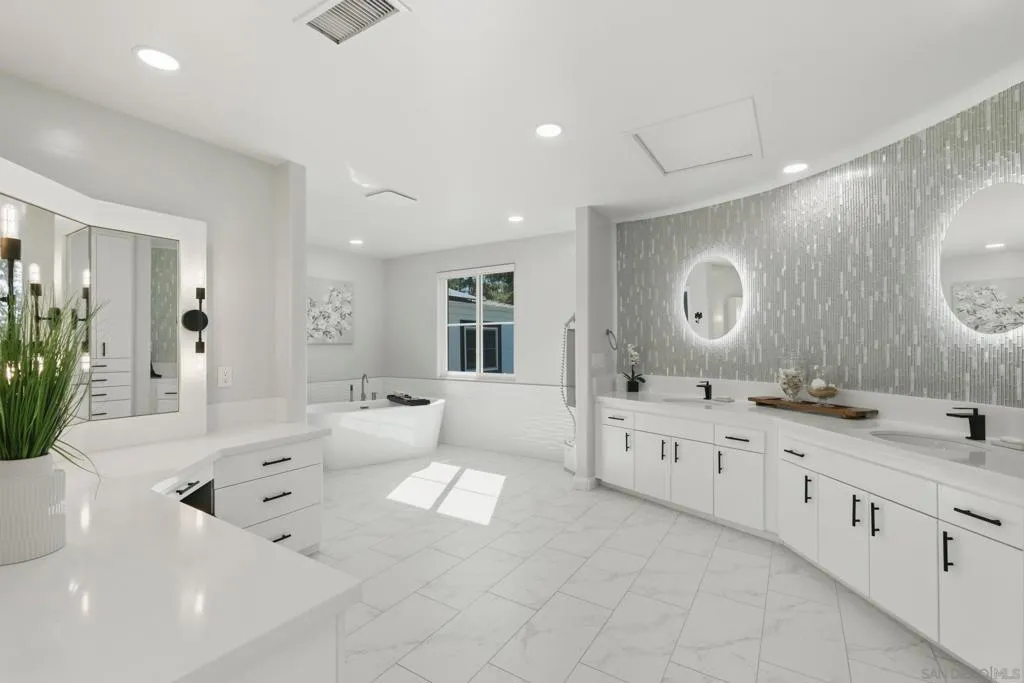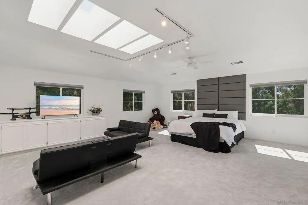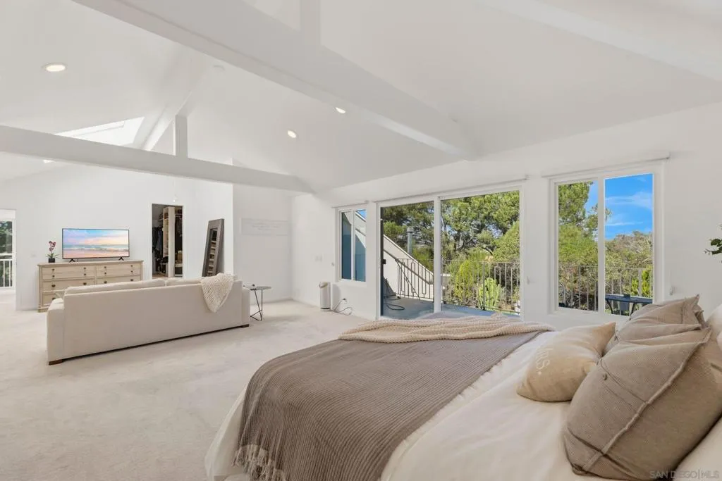 Set on a private 1-acre lot with sweeping mountain views, this exceptional estate offers a rare blend of privacy, space, & natural beauty. A circular driveway beneath a canopy of mature trees creates a dramatic arrival, welcoming you into a home filled with light, soaring vaulted ceilings, & architectural character. The main living space centers around a striking copper hood fireplace, while expansive windows frame the surrounding landscape. The chef’s kitchen overlooks the pool & grounds, creating a seamless connection between indoor living & outdoor entertaining. The primary suite serves as a peaceful retreat with a private balcony & mountain views, while a spiral staircase leads to a spacious bedroom or bonus space ideal for guests, a home office, or studio. Additional highlights include a temperature-controlled wine cellar, four-zone HVAC, three AC units, & two tankless water heaters. Outside, the grounds feel like a private resort with lush lawns, mature trees, natural boulder accents, a sparkling pool, & firepit. Minutes to Rancho Bernardo, 4S Ranch, Del Sur, & North County Mall. Set on 1-acre with sweeping mountain views, this remarkable estate offers a rare sense of privacy & natural beauty. A circular driveway beneath a canopy of mature trees creates a dramatic approach, leading you to a home that feels both secluded & welcoming within an established neighborhood where every property has its own character. Inside, soaring vaulted ceilings & expansive windows create a light-filled interior that feels both grand & inviting. Main living space is anchored by a striking copper hood fireplace, adding warmth & architectural character while natural light pours in from every angle. The chef's kitchen overlooks the pool & surrounding grounds, seamlessly connecting indoor living with outdoor entertaining. Whether hosting gatherings or enjoying quiet evenings, the layout was designed to bring people together. The primary suite offers a private sanctuary with its own balcony overlooking the mountains. A spiral staircase leads to a spacious bedroom or bonus retreat, ideal for guests, a home office, or studio. Additional highlights include a temperature-controlled wine cellar, four-zone HVAC, three AC units, & two tankless water heaters. The grounds feel like a private resort with lush lawns, mature trees, & natural boulder accents. Paver-lined patios surround the sparkling pool & firepit, creating inviting spaces to relax & take in the views. Just minutes from Rancho Bernardo, 4S Ranch, Del Sur, & North County Mall with easy access to dining, shopping, & everyday essentials. A rare opportunity to experience space, nature, & refined living.