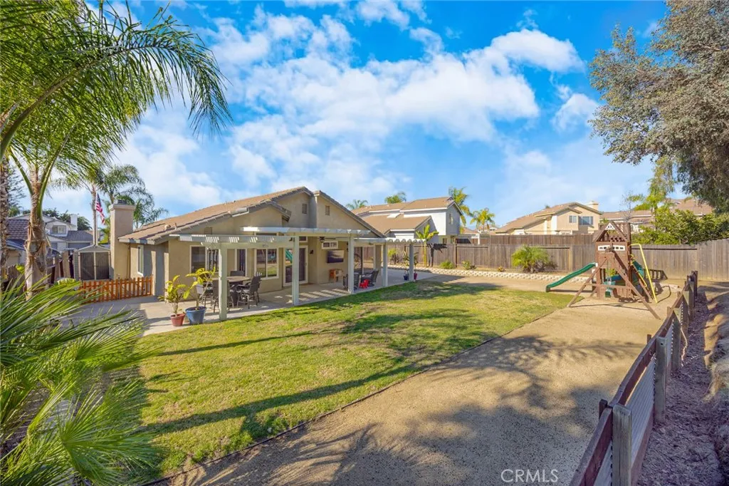 Welcome to 23632 Spindle Way in highly sought after Murrieta. Situated in a quiet, established neighborhood known for pride of ownership and top-ranked schools, this beautifully upgraded home offers comfort, efficiency, and everyday convenience. Step inside to discover new luxury plank vinyl (LPV) flooring throughout, complemented by fresh interior paint that creates a clean, modern, move-in-ready feel. New dual-pane windows fill the home with natural light while improving energy efficiency and year-round comfort. Major system upgrades add tremendous value, including a newer HVAC system and a QuietCool whole house fan, providing enhanced climate control, improved air circulation, and energy savings during warm Southern California months. The backyard is ideal for relaxing or entertaining, featuring a durable Alumiwood patio cover that offers shaded outdoor living space perfect for gatherings or peaceful evenings. A rare golf-cart-sized side gate provides excellent flexibility for additional storage, recreational vehicles, or easy backyard access. Enjoy proximity to highly rated schools, beautiful parks, walking trails, shopping, dining, and convenient access to major health services and medical centers. Commuters will appreciate easy access to main roadways while still enjoying the serenity of a quiet neighborhood setting. With thoughtful upgrades, energy-efficient improvements, and a prime Murrieta location, this turnkey home truly stands out. Don’t miss your opportunity to own this exceptional Murrieta property!