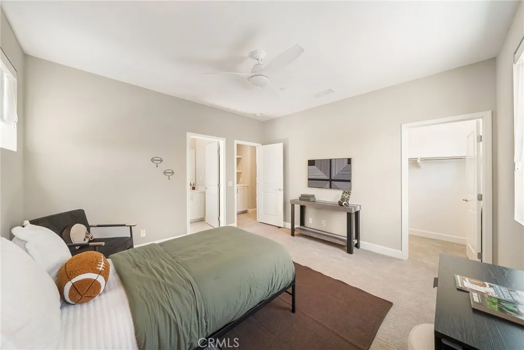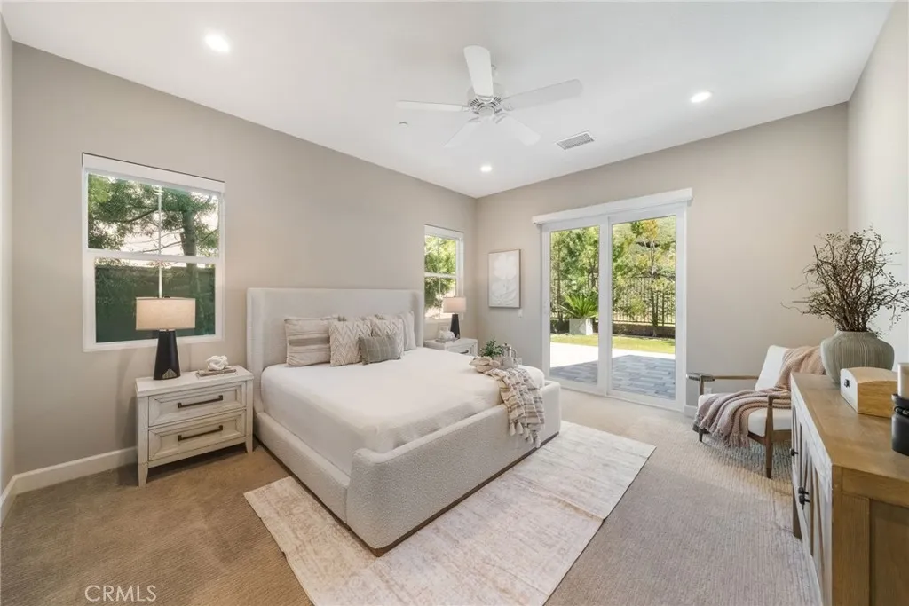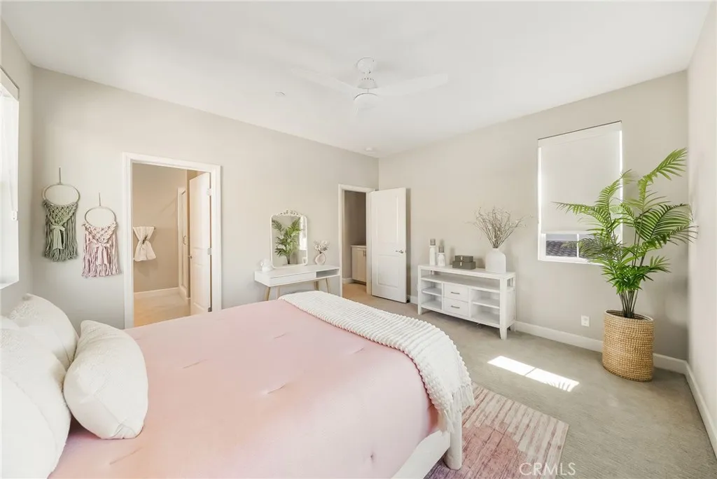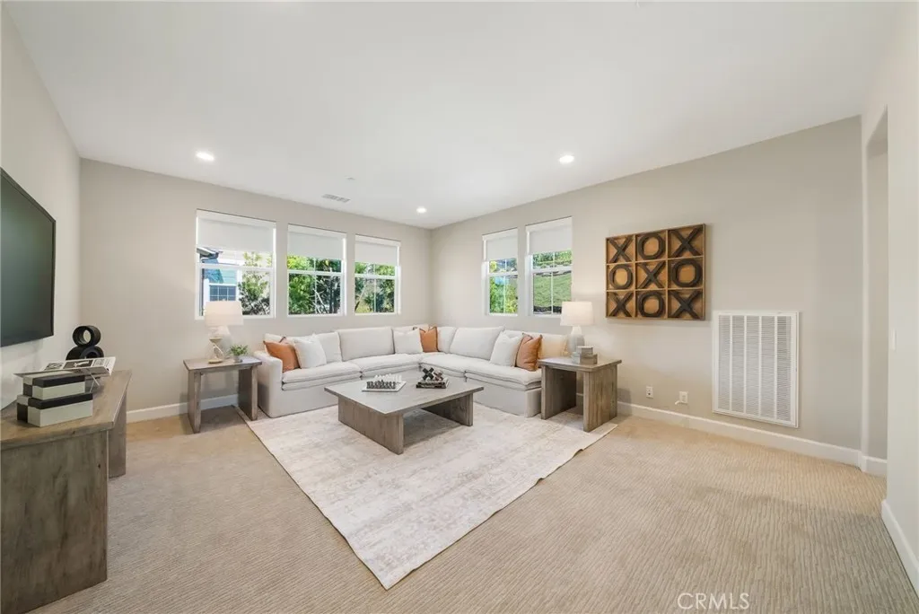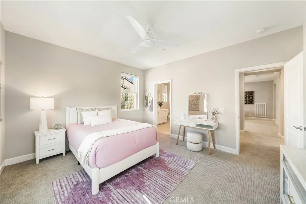 DOWNSTAIRS PRIMARY SUITE with an OPTIONAL FOURTH BEDROOM conversion available in the upstairs loft, offering flexibility for evolving needs. This thoughtfully designed Rancho Mission Viejo home features a functional layout where each bedroom includes its own walk-in closet and private ensuite full bathroom, providing comfort and privacy for both residents and guests.The open-concept living space is designed for seamless indoor-outdoor living, featuring accordion doors that open to the covered loggia, creating an inviting extension of the living area ideal for entertaining or relaxing. The primary suite includes its own sliding glass doors with direct access to the outdoor space, adding to the home's thoughtful design and connection to the outdoors.The downstairs living areas are enhanced with Hunter Douglas electric blinds, offering both convenience and a refined finish throughout the main level. The home also features owned solar, providing energy efficiency and long-term cost savings.Located in the highly desirable community of Rancho Mission Viejo, residents enjoy access to exceptional resort-style amenities including pools, fitness centers, parks, hiking and biking trails, and vibrant community gathering spaces.