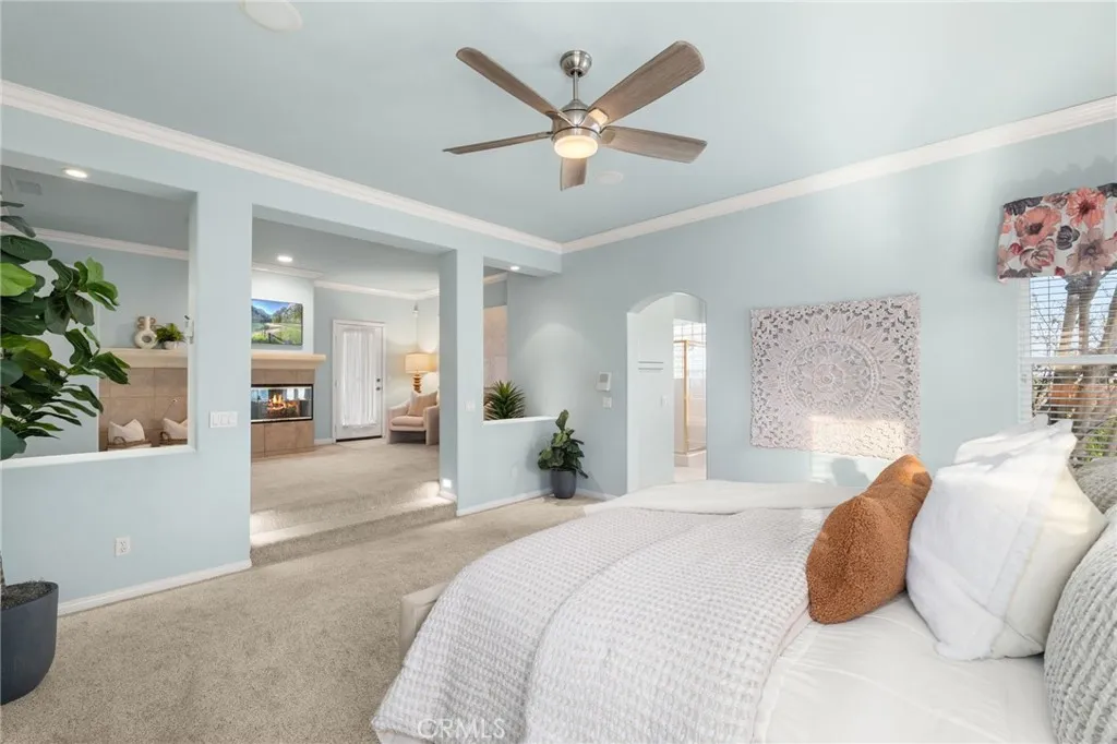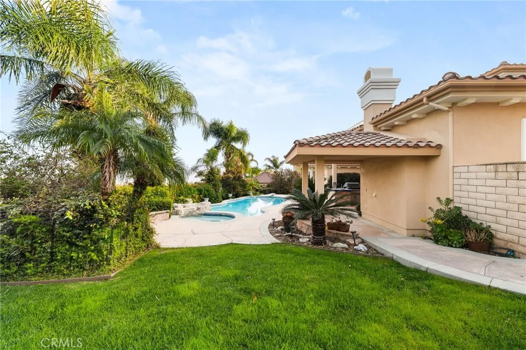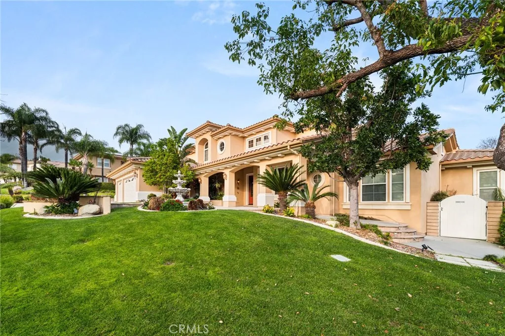Welcome to 5655 High Meadow Pl in Rancho Cucamonga, located in the highly sought-after Deer Creek Estates Collection. Built in 2000, this expansive 4,208 sq ft home sits on a 20,000 sq ft lot and features the largest floor plan in the Deer Creek community, offering 5 bedrooms plus a dedicated office, and 5 bathrooms designed for comfort, flexibility, and entertaining. A rare first-floor primary suite includes a spacious en suite bathroom and a massive walk-in closet with custom organized shelving. Three of the bedrooms feature their own private en suite bathrooms, providing excellent privacy and functionality. The home welcomes you with a grand entry and soaring windows, filling the formal living room with natural light. Additional gathering spaces include a formal dining room, a large family room with built-in entertainment center, and a breakfast nook with built-in desk. Upstairs offers two additional bedrooms, a loft, and an oversized balcony capturing mountain views and open space behind the property. The home also features three fireplaces and dual-zoned heating and air conditioning systems for year-round comfort. The three-car garage includes epoxy flooring and extensive custom cabinetry for storage. Situated on a 20,000 sq ft lot, the backyard is designed for Southern California indoor-outdoor living with a heated swimming pool and spa, gas fire pit, and covered BBQ island with bar seating, creating a private resort-style setting perfect for entertaining. Located within walking distance to Los Osos High School and Chaffey College, and just minutes from Trader Joe’s, shopping, dining, and convenient access to the 210 and 15 freeways, this Deer Creek Rancho Cucamonga home combines executive-level space, privacy, and convenience in one of the most desirable neighborhoods in the 91737 zip code.