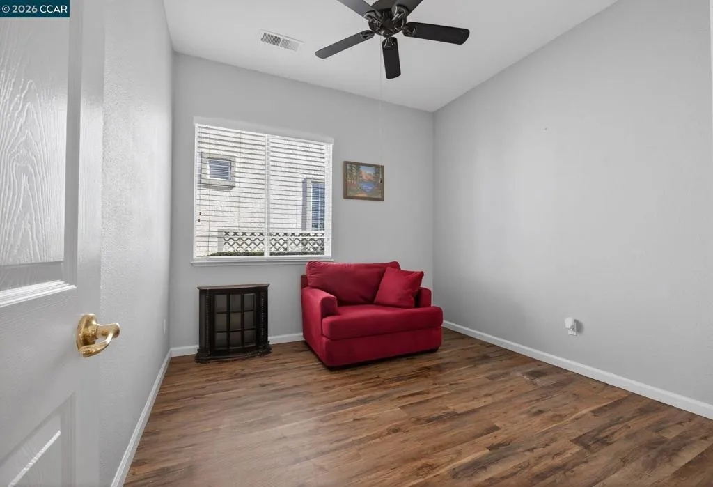 Great opportunity to visit this open and bright Summerset 2 home that boasts 2 bedrooms PLUS a den, a formal living and dining room and more. Fabulous corner location overlooking open space with only one neighbor. Enjoy the eat-in kitchen with new quartz counters, a breakfast bar, and stainless appliances overlooking the family room and back patio. There are 2 full bathrooms, an inside laundry room and a 2+ car garage. New HVAC and Water Heater too. The amazing covered patio and fenced-in lot is ideal for relaxing, entertaining and even welcoming for pets. The primary suite with bay window overlooks the former golf course and features a walk-in closet, luxurious bathroom with dual sinks, soaking tub and shower. Community amenities include gated entry, pool, gym, bocce, tennis courts, clubhouse and group activities all for a low monthly HOA of $142/month.