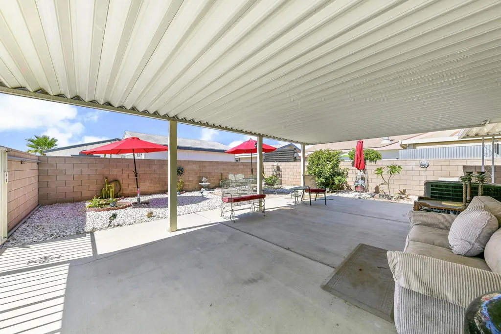 Welcome to Desert Groves, a gated 55+ community offering resort-style amenities and a relaxed desert lifestyle. This well-maintained 2-bedroom, 2-bath double-wide home features an open-concept great room with vaulted ceilings and a desirable split floor plan for added privacy.The spacious primary suite includes a jetted soaking tub and separate stall shower, creating a comfortable retreat. Additional highlights include a private gated carport and convenient guest parking within the community.Residents of Desert Groves enjoy two sparkling pools, a clubhouse, and RV parking, making it the perfect full-time residence or seasonal desert getaway.