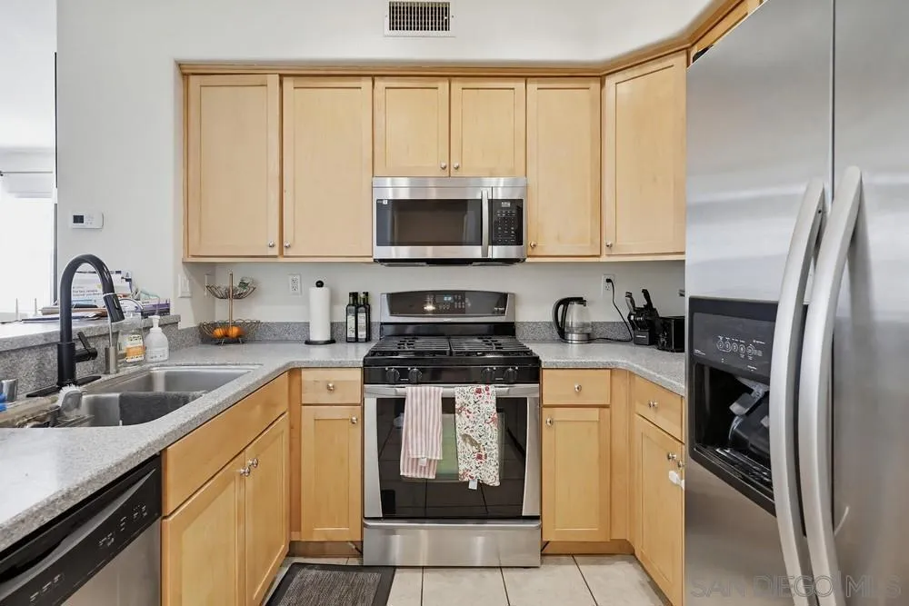 Beautiful end-unit townhome featuring 3 bedrooms, 4 bathrooms, and 1,335 sq. ft. of bright, open living space with a functional multi-level layout. The first floor offers an optional bedroom with an attached half bath, ideal for guests, extended family, a home office, or rental income. The second level features an open-concept kitchen and living area filled with natural light, a convenient half bath, and a private balcony perfect for relaxing. Upstairs includes an oversized primary suite with a beautifully updated bathroom, plus an additional bedroom and full hall bath. Home includes tandem parking and ample guest parking nearby. Enjoy community amenities such as a BBQ area, playground, and guest parking within a clean, peaceful, and family- and student-friendly complex. Conveniently located within walking distance to shopping, dining, and a golf course across the street. Prime central San Diego location minutes from SDSU with easy freeway access and a short drive to Downtown, Mission Valley, beaches, and parks.