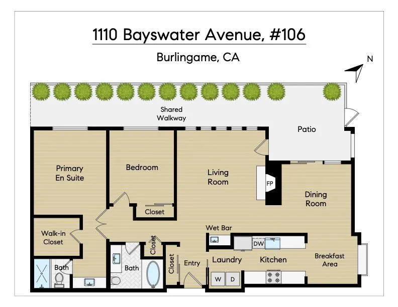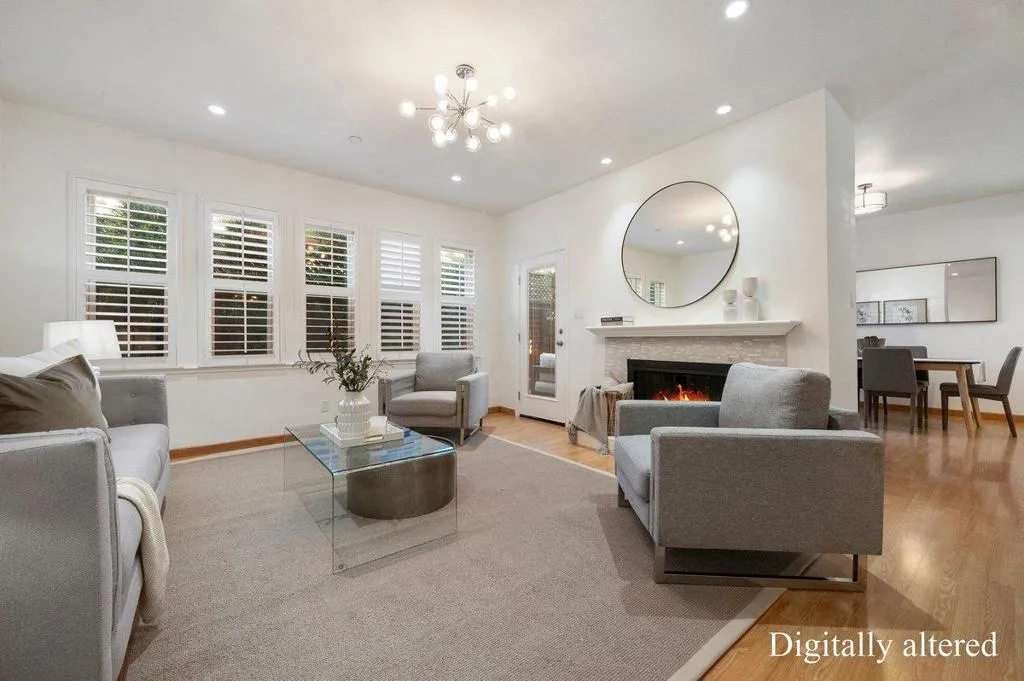 In the heart of Burlingames boutique charm and warm community spirit, this beautifully renovated condominium offers the rare luxury of true turnkey living. This 2BR/2BA condo offers approx. 1,245 sq ft of truly turnkey living. Abundant natural light shines throughout the open living/dining areas with a wood-burning fireplace, and the dining space flows to a private, tucked-away balcony, perfect for morning coffee or evening unwinding. Renovated with a comprehensive checklist: kitchen remodeled to the studs with new appliances, updated flooring, and water filtration; guest bath fully remodeled; primary vanity upgraded; fresh paint, new lighting, updated hardware; double-pane windows and sliding doors; and a new HVAC system with both heating and A/C (a rare upgrade in many Burlingame condos). Additional highlights include in-unit laundry with full-size washer/dryer, secure lobby entry, elevator building, two-car garage parking, and extra storage. HOA recently completed major building-wide improvements, approximately $25K invested in exterior upgrades including new stucco, fresh exterior paint, enhanced garage lighting, and new mailboxes. Prime downtown location just two blocks to Burlingame Ave and moments to Caltrain, Washington Park, top-rated Burlingame schools, BART, and SFO.
