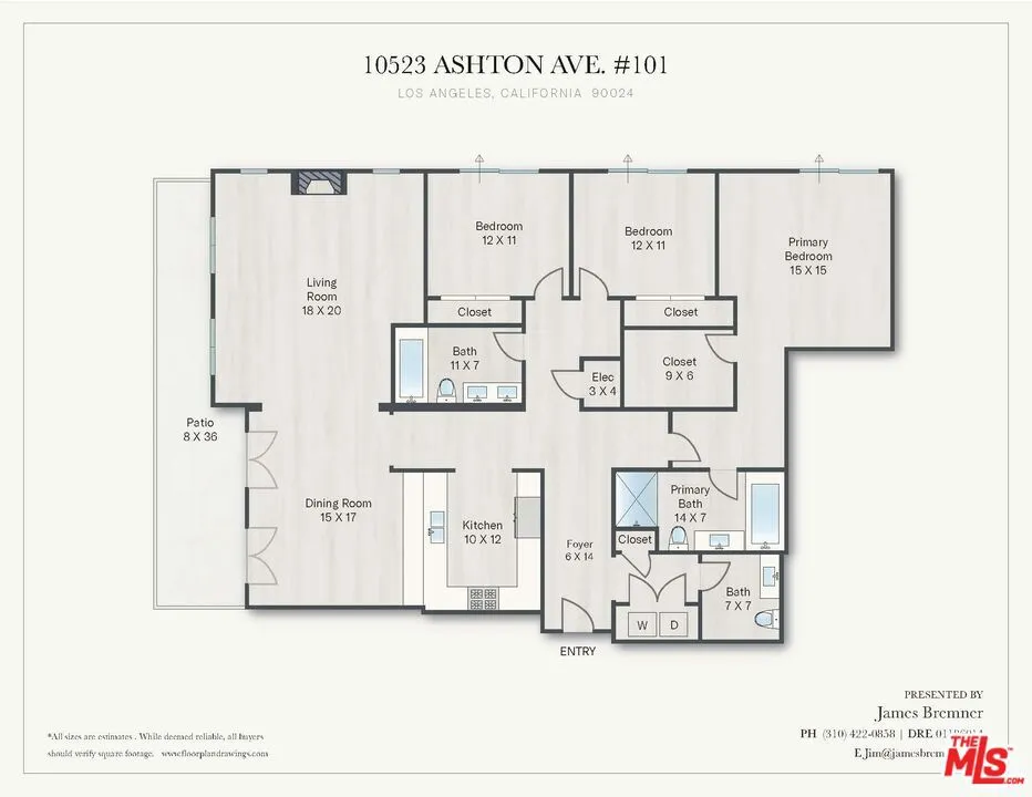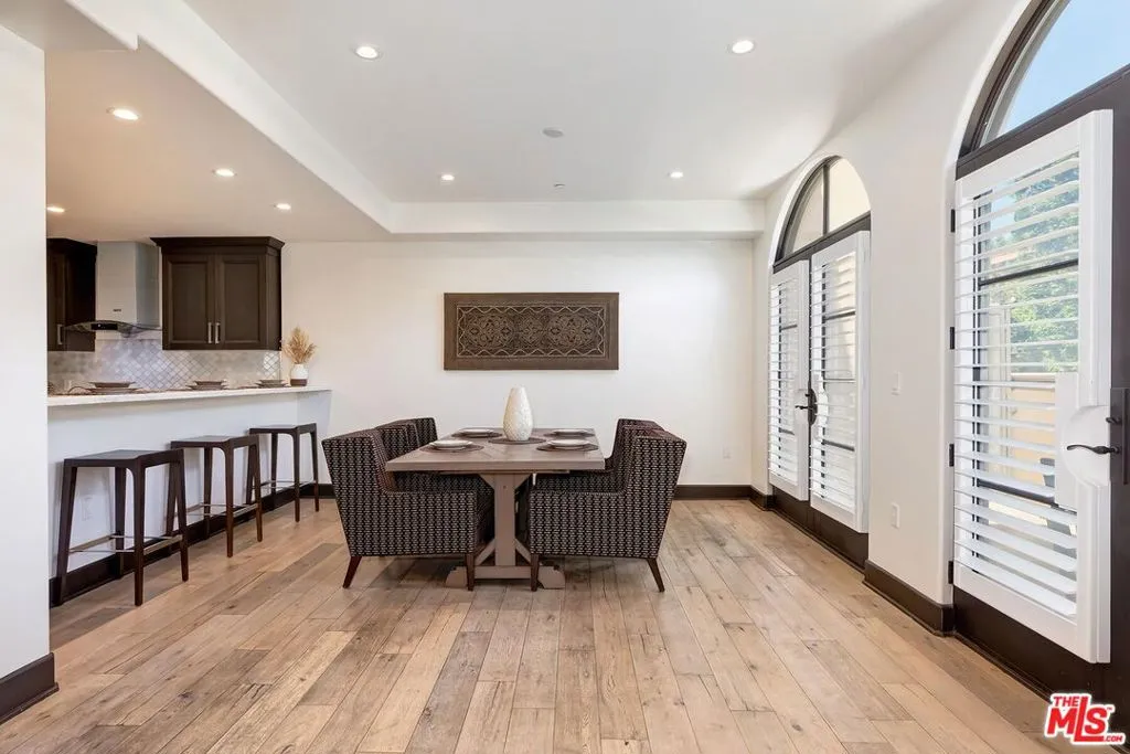 In a sought-after Westwood location, just moments from everything, this three-bedroom single-level residence offers comfort, scale, and privacy rarely found in condominium living. A gracious foyer opens to light-filled interiors, where high ceilings, luxurious wood flooring and a generous layout create a wonderful sense of volume and style. With no common walls and in a corner location, the home offers a rare feeling of privacy and ease. The modern open floor plan features a great room anchored by an inviting formal living room with stately fireplace flowing seamlessly into a spacious formal dining area perfectly designed for both daily living and entertaining. The dining room connects to the kitchen by way of a breakfast bar, creating a layout that feels both open and distinct. The gourmet kitchen is a chef's delight appointed with high-end stainless-steel appliances, Italian-style cabinetry, stone countertops and tasteful tile backsplash ready for any level of expertise. An extended patio runs alongside the dining room and living room, adding an easy connection, through several large French doors, to the outdoors. In addition, a discrete powder room allows for easy large scale entertaining or convenient family gatherings. All three bedrooms are positioned privately along the west-facing side of the home, including a well-appointed primary suite with a spacious closet and a sumptuous bath with a separate shower and soaking tub. Two additional bedrooms share a full bath, thoughtfully located just outside the bedroom wing. The extra bedrooms add flexibility for a large family, multiple guests or the perfect home office. This newer building offers a carefree opportunity to enjoy the space and livability of a true home in one of Westwood's most desirable neighborhoods mere moments from eclectic Westwood Village, world renown UCLA, Century City business hub, tony Westfield mall, word class Beverly Hills shops and restaurants and is located in the highly desirable Fairburn Elementary School district.