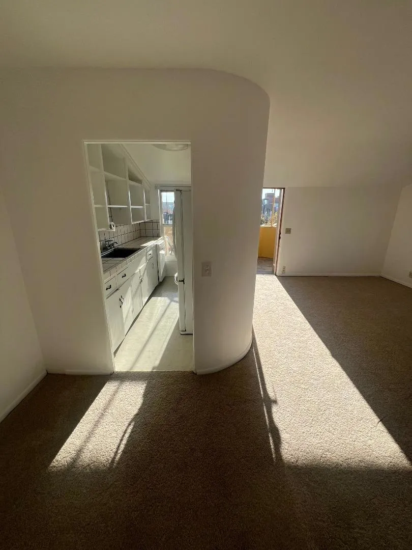 A5 Top floor, 700 sf, unfurnished 1 Bedroom, 1 Bathroom, with deck access, view of the South West. The apartment has gas heater, kitchen with veramic tiled counter, gas range, disposal, dishwasher, new refrigerator, all double pane windows, brand new carpet, brand new new venetian blinds. Excellent parking. Proximity to the California Ave Railroad station, and a multitude of retail shops, Cafes and Restaurants. California Ave is now Pieton. Sunday morning is still Farmers Market, the colorful weekly event. The location is the epicenter of all sorts of business and cultural activities. Music bands play towards the end of the week, in the evening. The area is close to Oregon Express Way and Page Mill Rd, leading to Highway 101 and Highwy 280, and it is one or two blocks away from Stanford Research Park. California Ave is a stop for the Stanford free shuttle.