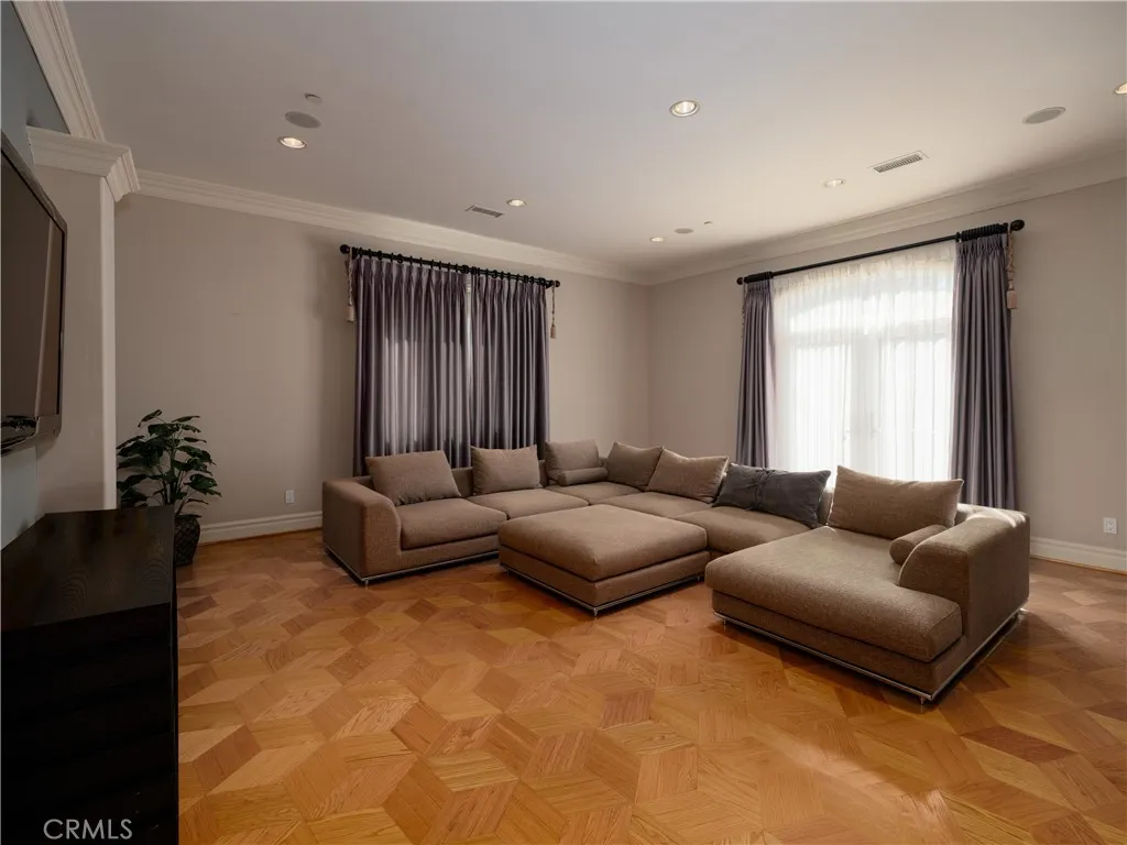 Located behind private gates in one of Encino’s most desirable South of Ventura Boulevard locations, this impressive Mediterranean estate offers exceptional privacy, grand scale living, and panoramic valley views. Built in 2009, the residence showcases timeless architecture and elegant finishes throughout. A dramatic two-story entry with custom wrought-iron double doors, soaring ceilings, and a sweeping staircase creates an unforgettable first impression. Rich hardwood floors, extensive custom millwork, and expansive windows fill the home with natural light while framing beautiful views of the surrounding hills and valley. The thoughtfully designed floor plan offers multiple formal and casual living spaces ideal for entertaining. The gourmet chef’s kitchen with custom cabinetry, stone counters, and center island opens to spacious gathering areas and flows seamlessly to the outdoor entertaining spaces. The expansive primary suite serves as a luxurious retreat, featuring a sitting area with fireplace, balcony overlooking the valley, spa-style bathroom with soaking tub and walk-in shower, and large custom walk-in closets. Additional luxury amenities include a home theater, elevator, fitness room, wet bar lounge, and beautifully appointed bathrooms throughout. Designed for indoor-outdoor living, the resort-style backyard features a sparkling pool and spa, multiple lounge areas, and covered terraces ideal for year-round entertaining while enjoying sweeping valley views. A private gated motor court with expansive paver driveway and attached three-car garage provides ample parking and privacy. Ideally located just minutes from Ventura Boulevard’s premier shopping, dining, and entertainment, this exceptional property offers the perfect blend of luxury, scale, and convenience in the heart of Encino.
