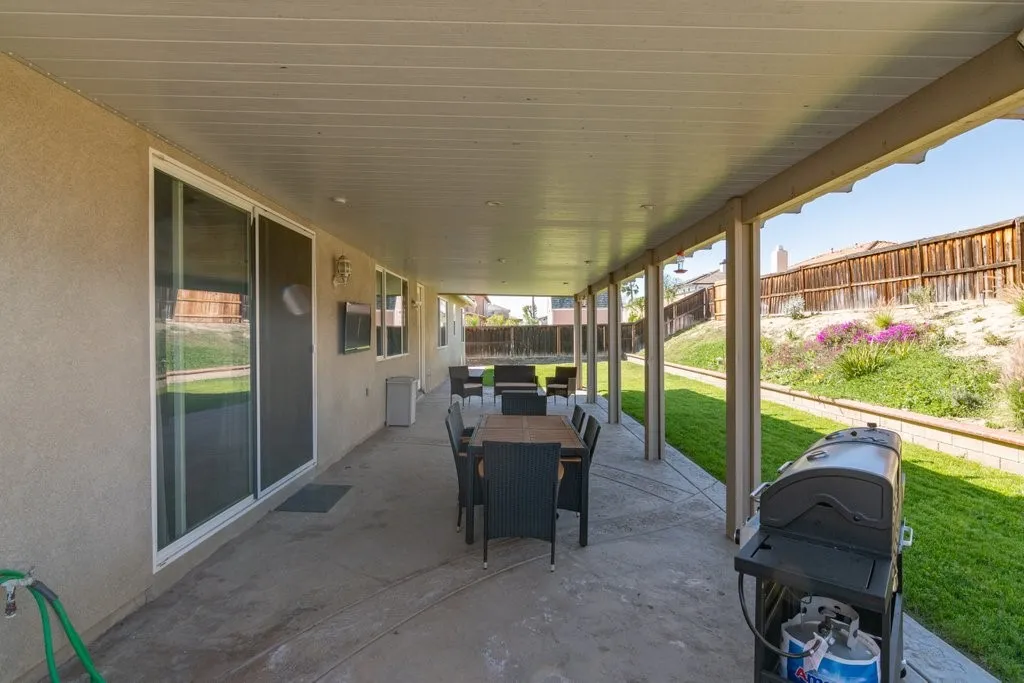This well-kept single-story home in the Rancho Belago area offers a comfortable layout with four spacious bedrooms and bright living spaces throughout. The entry features a custom leaded glass front door, and the interior includes wood flooring in the family room, ceramic tile in key areas, and an upgraded kitchen with ceramic countertops, a stone backsplash, and a large center island. The primary suite provides a generous retreat with a spa tub, makeup vanity, and a large walk-in closet, while ceiling fans and a Whole House Fan support efficient cooling. The backyard is designed for easy outdoor enjoyment with a wide stamped-concrete patio and plenty of room to relax or entertain. Additional conveniences include a Tuff Shed for storage, attic access with pull-down stairs, and a three-car garage. Located in a beautiful community known for pride of ownership, this home offers close proximity to parks, schools, shopping, and the 60 freeway.