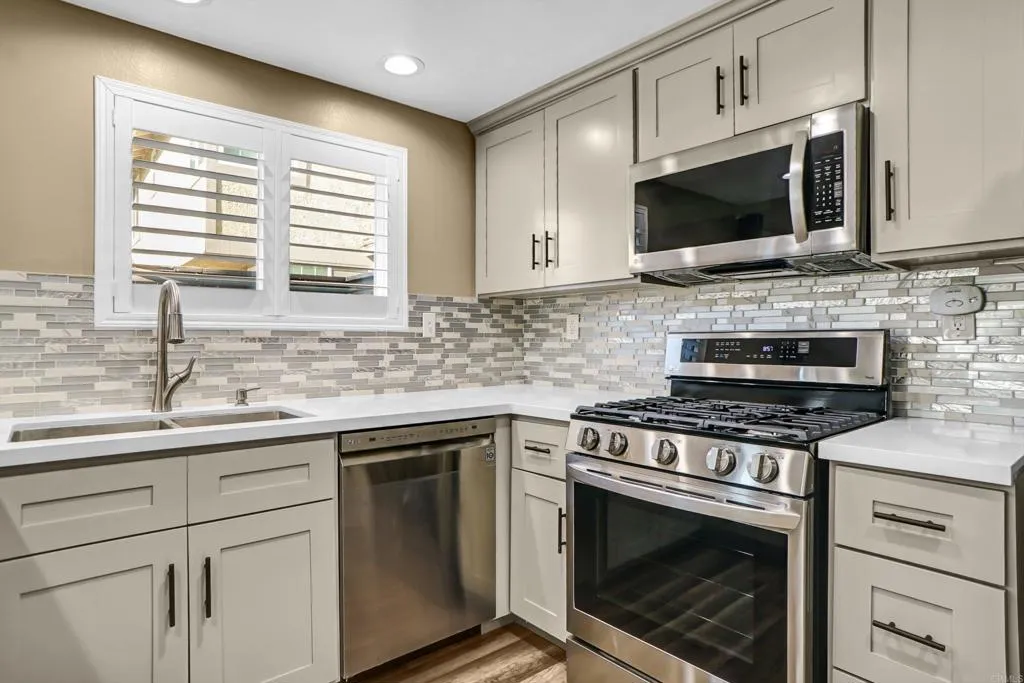 First showings at Open House 3/7 and 3/8. Shaded beneath mature trees in the desirable Riverview community of Ventura, this inviting home blends comfort, style, and everyday livability. The bright and spacious living area features warm wood-style flooring, abundant natural light, and a striking brick fireplace that creates a cozy focal point for gatherings. A double-pane slider opens to the private patio, while the living room flows seamlessly into the updated kitchen, complete with stainless steel appliances, modern cabinetry, stone countertops, a stylish tile backsplash, and recessed lighting. Upstairs, a versatile bonus room provides flexible space ideal for a home office, media room, playroom, or guest area—perfect for adapting to a variety of lifestyle needs. The home also offers a dedicated laundry room with storage cabinets and a spacious primary bathroom featuring a double vanity and generous counter space. Residents of the Riverview community enjoy resort-style amenities including pools, spas, tennis courts, and scenic linear park access, creating a welcoming neighborhood environment where outdoor recreation and community living come together—all with a relatively low HOA