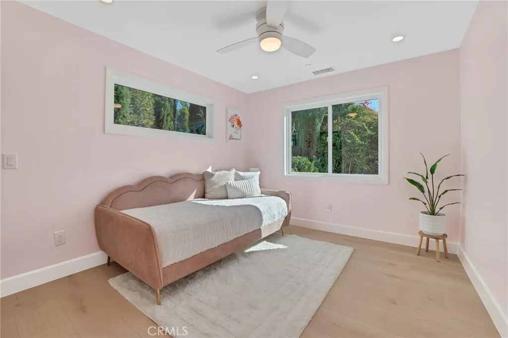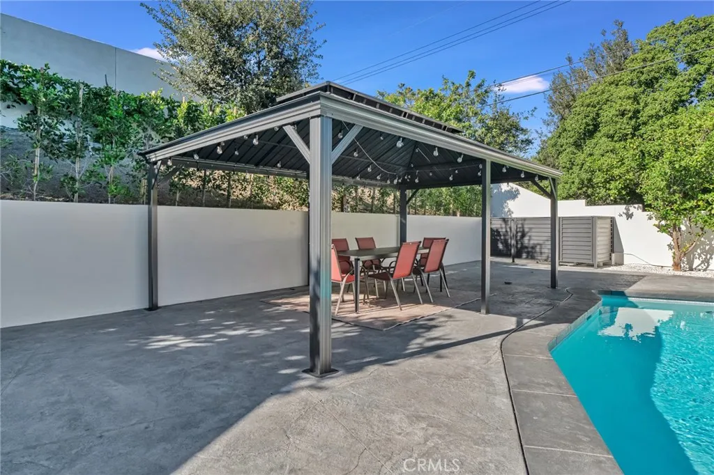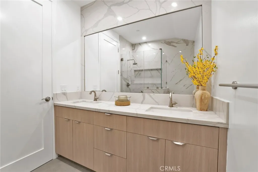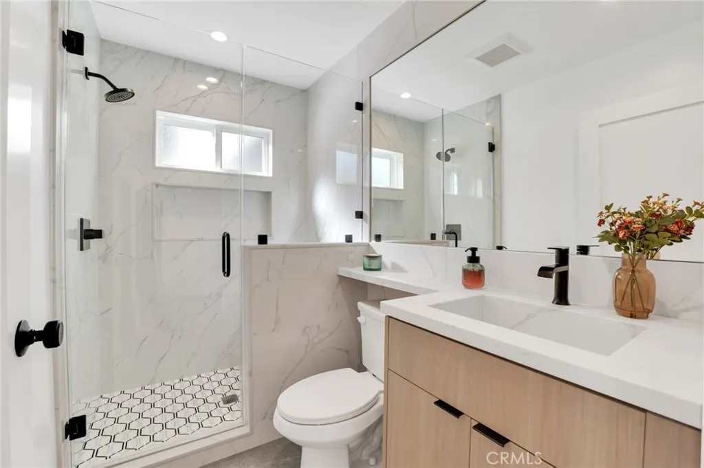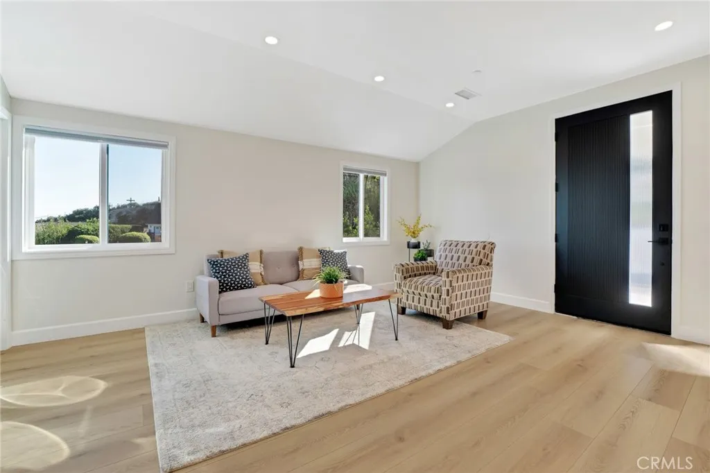 Stunning newly rebuilt modern compound with ADU, pool and Solar, located at 17165 & 17163 Midwood Drive in desirable Granada Hills, offering approximately 3,400 sq ft of combined living space with 6 bedrooms and 4 bathrooms, designed for luxury living, multi-generational flexibility, and income potential. Completely reconstructed with permits between 2025–2026 from foundation to roof, this exceptional property delivers the feel of new construction with brand-new major systems, energy efficiency, and high-end designer finishes throughout. The main residence (approx. 2,600 sq ft with 4 bedrooms and 3 bathrooms) features a highly desirable open floor plan with spacious living and dining areas filled with natural light. A dramatic Calacatta marble fireplace wall creates a striking centerpiece in the living area. The chef’s kitchen showcases a large Italian Calacatta marble island, matching marble countertops and backsplash, panel-ready Sub-Zero refrigerator, high-end appliances, custom cabinetry, and a walk-in pantry, making it ideal for both everyday living and entertaining. The primary suite retreat offers a sitting or office area, spacious walk-in closet, and a spa-inspired bathroom featuring a soaking tub and oversized walk-in shower finished in luxury porcelain. A dedicated laundry room with marble finishes, utility sink, smart LG washer and dryer, folding area, and storage cabinetry adds everyday convenience. The newly constructed ADU / Guest house (approx. 800 sq ft with 2 bedrooms and 1 bathroom) includes its own open living area, kitchen, and private laundry, ideal for rental income, guest quarters, or extended family living. The outdoor space features a fully upgraded swimming pool with Pebble finish and lighting, a convenient exterior pool bathroom, and low-maintenance landscaping with artificial turf. Exterior highlights include more than 10 varieties of fruit trees, a newly poured treated concrete driveway, RV parking, dedicated storage area, and stone-accented entry. Additional upgrades include new roof, insulation, plumbing, drainage, windows, gutters, two independent HVAC systems with smartphone control, two separate solar systems (one per residence), fire sprinklers, and separate gas and water meters. This rare Granada Hills compound with ADU, pool, solar, and income potential offers exceptional flexibility and modern living in a prime San Fernando Valley location.