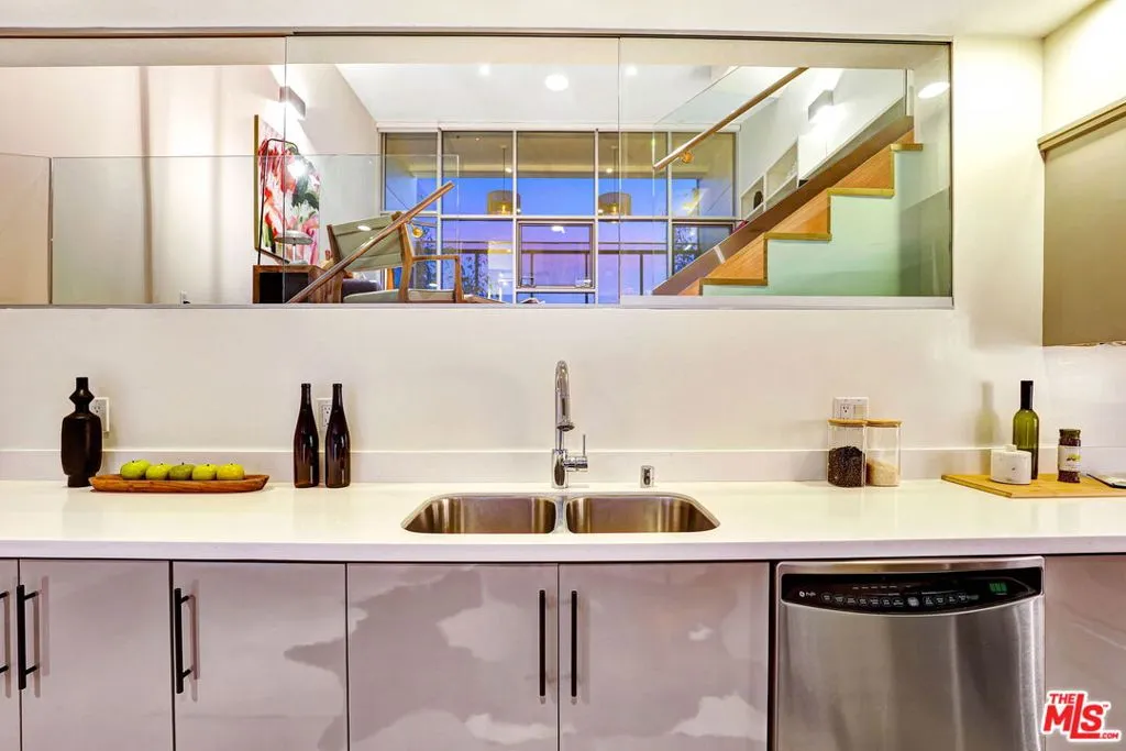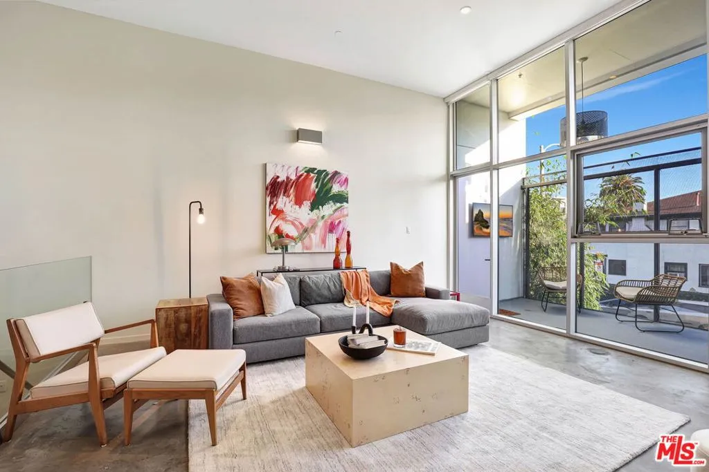 Sited in Hollywood's creative corridor, Loft #4 is a striking architectural residence within the design-forward Wilcox Avenue Lofts by Lorcan O'Herlihy. Defined by vertical scale and seamless indoor-outdoor flow, this multi-level loft delivers volume, intention, and flexibility. The loft's main level is anchored by dramatic two-story ceilings in the living area, where expansive industrial windows flood the space with natural light and emphasize the residence's architectural lines. The living room opens to a substantial private balcony ideal for outdoor dining, lounging, and entertaining, creating a true extension of the interior living space. An eat-in kitchen offers generous counter space and storage, designed for both everyday functionality and gathering. A dedicated downstairs office with built-ins provides a refined and highly functional work-from-home environment while maintaining the openness of the overall design. A full bathroom with a tub/shower combo completes the lower levels. Upstairs, loft #4's primary suite is generously scaled and privately positioned, featuring ample closet space and a well-appointed bathroom with a step-in shower. The upper level captures the drama of the unit's architecture while offering a comfortable retreat above its main living areas. In-unit laundry is also here. Additional features include automatic blinds, custom-built wall unit, and built-in storage. Secure access and 2 assigned parking spaces (tandem) enhance convenience. Underground guest parking is also available on a first-come first-serve basis. Moments from major studios, Netflix, Paramount, and the dining, retail, and nightlife that define central Hollywood, Loft #4 offers architect-driven design and elevated urban living in one of Los Angeles' most desirable locations. HOA dues are $785/mo. and include earthquake insurance.