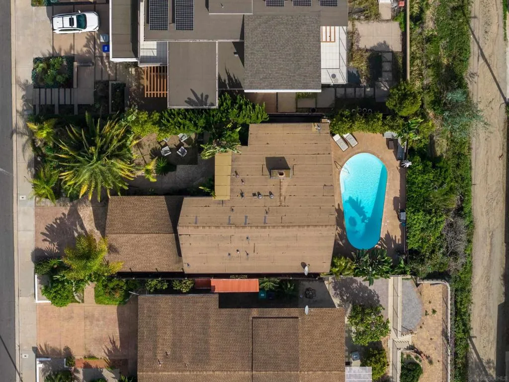 Tucked away in desirable North Pacific Beach, this beautifully remodeled coastal retreat masterfully blends touches of mid-century modern elements with relaxed island-inspired charm. The interior shines with durable LVP flooring, tongue-and-groove ceilings accented by bold exposed beams, crisp white shaker cabinetry, sleek quartz countertops, and eye-catching vibrant subway tile backsplashes. At the center, a striking statement fireplace elegantly divides the living and dining areas while serving as a cozy, inviting focal point. An extra-wide sliding glass door frames breathtaking views of the backyard oasis and floods the open-concept layout with natural light, creating seamless flow ideal for everyday living and effortless entertaining. The generous primary suite offers a spacious walk-in closet and direct backyard access, enhancing that coveted indoor-outdoor connection. Both bathrooms have been thoughtfully updated with modern floating vanities and contemporary finishes for a fresh, spa-like feel. Enveloped by lush palms and mature greenery, the property evokes a private Hawaiian getaway. The backyard features a sparkling pool and ocean views, the ultimate spot for sunset swims, al fresco dining, and weekend gatherings. A fenced front yard provides extra space perfect for pets, play, or a cozy fire pit, while the attached two-car garage and additional driveway parking deliver plenty of convenience. Just moments from Law Street beach, premier surf spot Tourmaline beach, cafes, restaurants and more, this slice of paradise is calling your name!