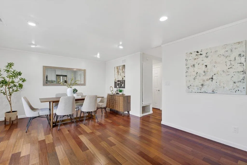 Welcome to this beautifully updated 3-bedroom, 2.5-bath townhouse in the desirable Tanglewood community of Blossom Valley. The spacious open-concept kitchen features stone countertops, a white subway-tile backsplash, a built-in electric range with double oven, and stainless steel appliances, seamlessly flowing into the bright living and dining areas. Rich hardwood flooring runs throughout the home, creating a warm and modern feel, and a convenient half bath is located on the main level. Upstairs, the primary suite offers a quiet, private balcony overlooking the greenbelt, a beautifully remodeled shower, and a wall-to-wall closet, providing a comfortable retreat. Two quiet, spacious bedrooms with mountain views. Central A/C, dual-pane windows, recessed lighting, in-unit laundry, copper plumbing, New roof shingles, and ample storage, along with a spacious, inviting private patio. Owners enjoy a park-like community setting with tree-lined paths, a pool, a clubhouse, a kitchen, ping-pong, and a BBQ area. HOA Inc. water and trash. Conveniently located just 0.2 miles from Branham Light Rail with easy access to Hwy 85, 87, and Almaden Expy, Minutes from Costco, Trader Joes, dining, and entertainment at Westfield Oakridge Mall. Move-in ready, Excellent location! Nice neighbors!