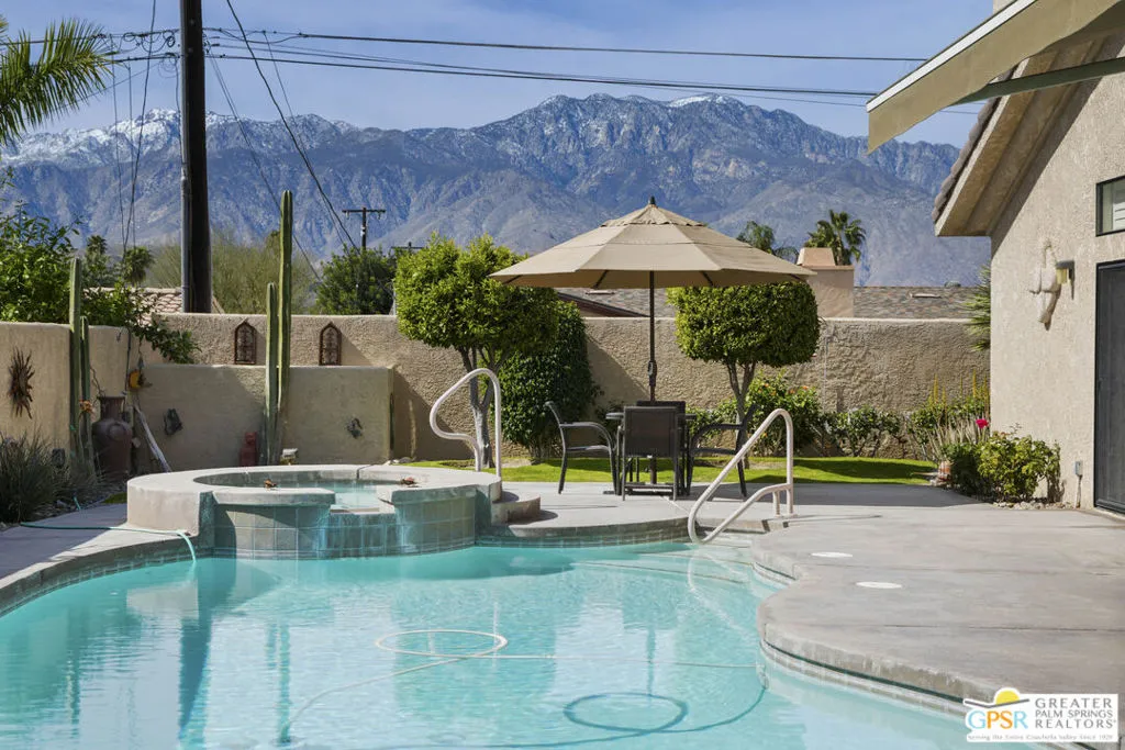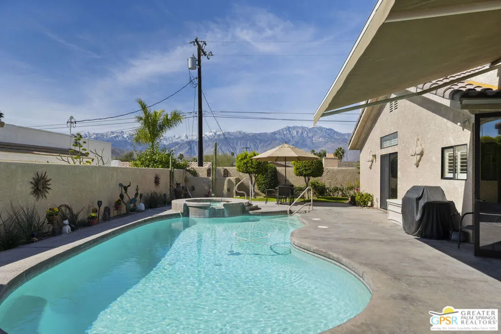 You have amazing curb appeal with the circular drive and pristine vegetation. Walk into your private arched entry way to breathtaking mountain views! The large patio with sparkling pool & elevated spa provides lots of entertainment space. The great room (enclosed patio) has been the central heartbeat of this spacious home and can easily have multiple uses with the additional square footage. The 3 bedroom suites are separated giving lots of privacy. The main primary suite with vaulted ceilings has it's own patio with spectacular mountain views. Two of three baths have granite countertops & showers, one has a tub. The third bath has specialized tiled countertops and shower. The living room with vaulted ceilings has the same fabulous mountain views while you cozy up to the fireplace with a stack stone wall feature. The living room and great room have direct access to the patio area. There are so many special features such as: tile flooring throughout, 4 skylights, 6 speakers, 2 HVAC systems, 28 owned solar panels, 2 car garage with 220 volt & pull down stairs with lots of storage, automatic awning plus plantation shutters! What a package...You are conveniently located to shopping, restaurants and schools.