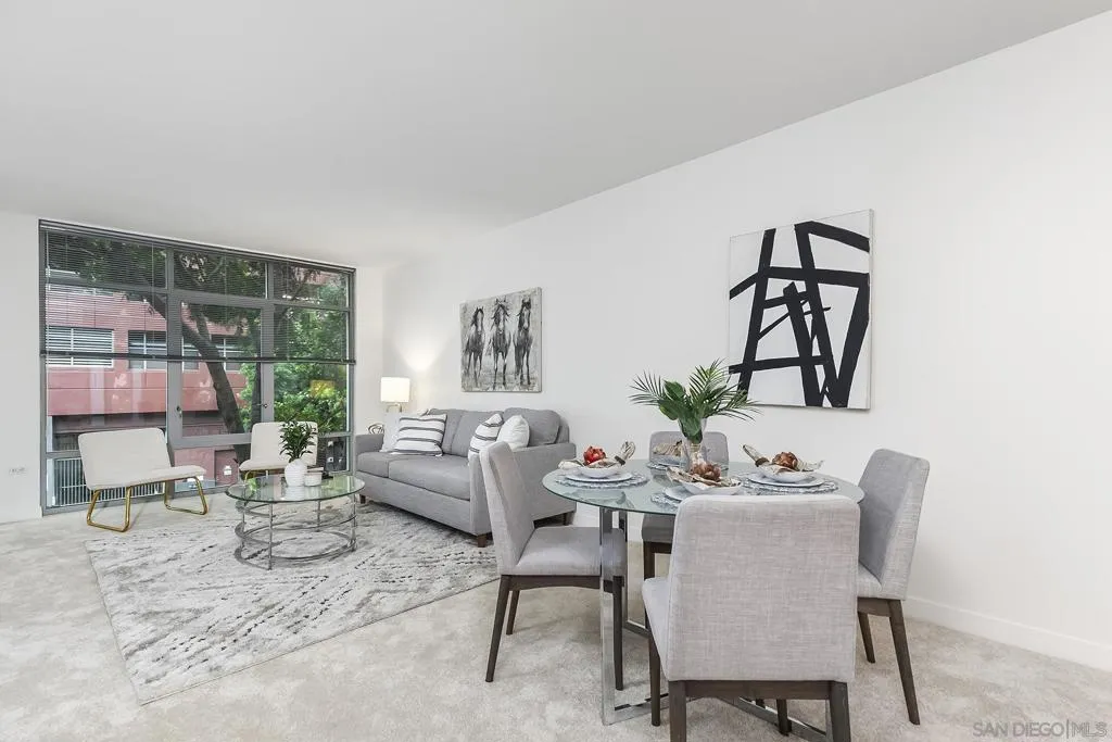 Welcome to the highly desirable Aqua Vista, your urban-meets-coastal escape in the heart of San Diego! This charming 766-square-foot condo, built in 2004, is tucked within the highly sought-after Downtown community, offering a perfect balance of tranquility, comfort, and vibrant city living. Lowest priced unit in the complex. Owner is READY to sell! Nestled next to Little Italy, you’ll be just steps away from buzzing cafés, iconic restaurants, artisan markets, and peaceful waterfront strolls. Inside, this inviting one-bedroom, one-bath retreat features an open layout that seamlessly connects the living, dining, and kitchen areas—excellent for entertaining or unwinding after a day of exploring the city. The charming galley-style kitchen offers a refrigerator, microwave, and dishwasher, providing everything you need for easy, efficient daily living. Residents enjoy an impressive array of community amenities, including a sparkling rooftop pool & spa, a fitness center, two welcoming lobbies, and outdoor barbecue areas perfect for gatherings. Additional conveniences—such as air conditioning and valet garage parking for one car—enhance your everyday comfort. In-unit laundry makes chores a breeze, giving you more time to enjoy Little Italy’s lively energy or take in San Diego’s stunning shoreline. Your ideal San Diego home awaits—don’t miss this incredible opportunity!