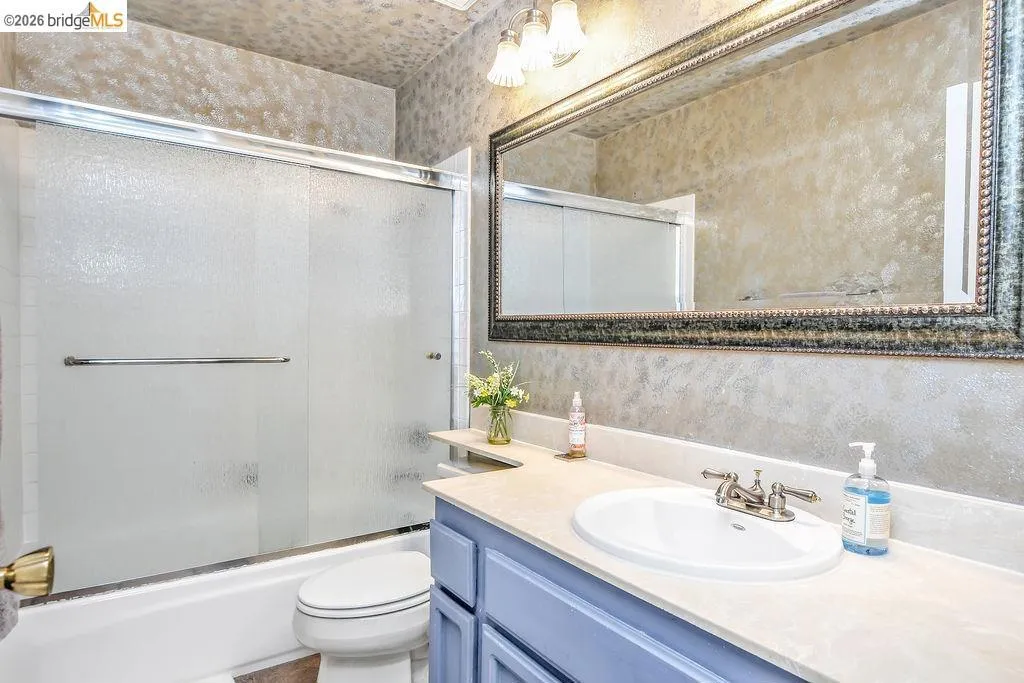 This 4-bedroom, 2.5-bath home shines with natural light and pride of ownership. Large windows create a bright and airy atmosphere throughout the main living spaces. Downstairs features a formal living room, a formal dining room, and a comfortable living space. The bedrooms are privately situated upstairs, where the windows are finished with shutters for added privacy and charm. The expansive backyard offers plenty of room to entertain, garden, or unwind in the above-ground spa. This home also features leased solar with no true-up, helping provide predictable energy costs. Conveniently located close to BART and shopping, the property offers easy access to commuting and nearby amenities.