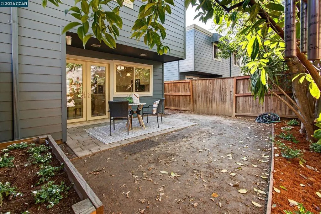 Gorgeous townhome in sought-after location! This special enclave of just 30 homes sparkles with brand new exterior siding. Although tucked away in a serene park-like setting, it is just steps to BART, shops, Iron Horse Trail, Bay Club, restaurants, and minutes to freeway access. This desirable end unit is filled with light and lives like a single family home, with fenced private front and back yards. The spacious living room, overlooking the private front garden, has a brick fireplace. The updated kitchen, adjacent to the dining area, features sleek stainless steel appliances and quartz countertop. Upstairs are two spacious bedrooms with ample closet space, a well-designed compartmented bathroom, and a laundry closet with full-sized washer and dryer. Additional features include wood flooring, central heat and A/C, dual pane windows. Enjoy a true California lifestyle with easy indoor/outdoor access from the large dining area through glass French doors to the inviting shaded patio. Come summer, plant vegetables in the raised planter bed and go for a swim in the delightful pool. Zoned for top-rated Walnut Creek schools. Plenty of storage space, with two exterior locking closets large enough for bikes, sports equipment and more. Two assigned parking spaces, one covered.