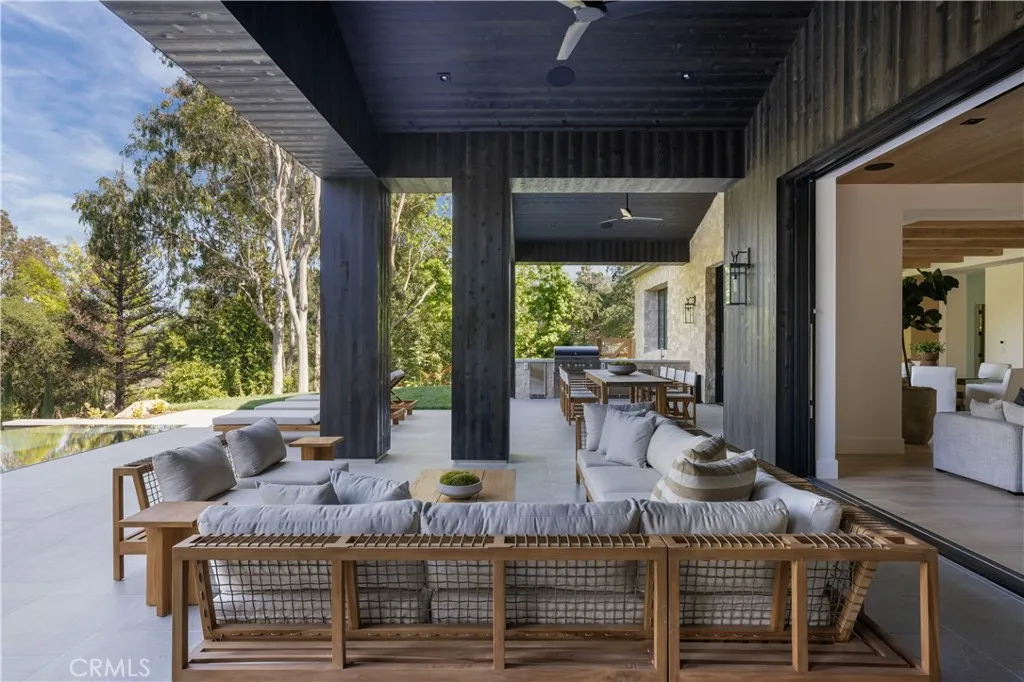 Gorgeous new estate sited on nearly 2.5 acres of mature trees and superbly private grounds. Nestled on a quiet cul de sac, highlights of this beautifully built residence include an open floor plan that's perfect for relaxed family living and gracious entertaining. Features include a superb chef's kitchen with two islands & sunny breakfast room, opening to the spacious family room with stone fireplace and huge picture windows overlooking the lush grounds. Additional amenities include both formal living & dining rooms, a lounge with wet bar, a glass encased, refrigerated wine room, a beautiful custom office, a deluxe home theater, a gym/wellness center with both steam shower & sauna, and a second, upstairs den. All six bedrooms in the main house are en suite, and the primary suite is a true statement of luxury with dual all stone baths, two generous, room-sized custom closets, a two-sided, floor to ceiling fireplace, and an expansive walk-out balcony, all nestled amongst numerous mature oak & pine trees. The amazing grounds also include your own private tennis court, a sparkling infinity edged pool and spa, a covered patio with barbecue center, and a one bedroom guest house set on it's own pad with a large grassy lawn area, plus a 4-car garage with loads of off additional off street parking. With a wonderful, center of Hidden Hills location, close to highly regarded public and private schools, and just minutes from The Common's Shopping Center, this home has much to offer. *** Please see the property video in the link below.