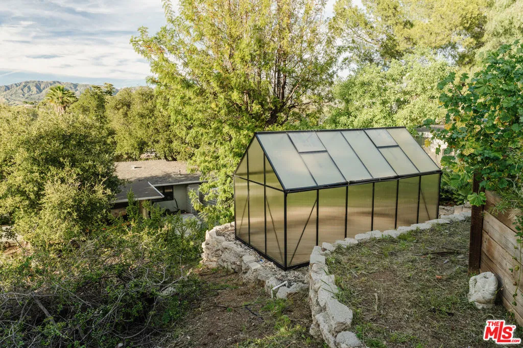 Imagine waking up to panoramic views that stretch to the distant mountains, all from your own incredible, otherworldly hilltop retreat in Shadow Hills! Perched on a secluded knoll, this ranch-style Mid-century home offers 3 bedrooms and 2 bathrooms on nearly 1.4 acres of impressive land, blending timeless mid-century character with thoughtful modern conveniences to create a truly one-of-a-kind residence. The property also features a separate 1-bedroom, 1-bath guest house, offering flexibility for visitors, a home office, or additional living space. A circular driveway guides you to double doors that open into a spacious foyer, where tile flooring, a wood-accented ceiling, and streams of natural light set a warm, inviting tone. Floor-to-ceiling windows line the living and dining areas, framing breathtaking vistas against the foreground of your own picturesque backyard. Host dinner parties as the sky shifts colors outdoors, relax under your trees' dappled shade, or enjoy a peaceful morning coffee with nothing but endless sky in sight. The kitchen features tiled countertops, sleek wood-grain-style cabinetry, and a walk-in pantry that keeps everything within reach. Your primary suite offers a generous closet, a soothing ensuite with a striking shower, a private patio, and direct access to the scenic rear gardens. Your treetop guesthouse with its own balcony captures equally stunning views. With a separate laundry room, ample storage, a greenhouse, and even an extra-large chicken coop, every detail creates versatility for any lifestyle. Located near Burbank, Glendale, I-5, and I-210, this distinctive abode is an opportunity not to be missed. Come see how extraordinary life here can feel!