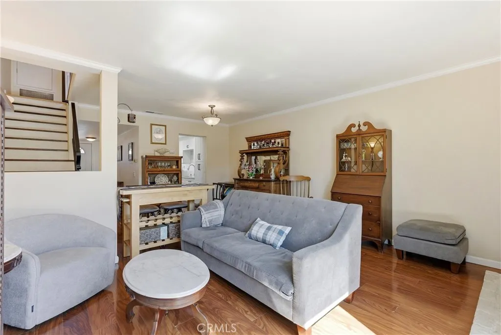 Well-maintained and beautifully updated, this 2-bedroom home in Cherrywood Village offers 1,065 sq. ft. of comfortable living space and the perfect blend of modern upgrades and coastal charm. Located approximately three miles from the world-famous Huntington Beach, “Surf City,” this sought-after community delivers the best of beach-close living. The home features a fully remodeled kitchen with quartz countertops, recessed lighting, a nearby pantry, and a custom built-in wine rack. A cozy dining area sits just off the kitchen, creating a warm and inviting space for everyday meals. The spacious living room, complete with a fireplace, opens to a good-size private patio perfect for entertaining or enjoying Huntington Beach’s cool ocean breezes. The two-car garage provides direct access to the generously sized patio. Upstairs, the primary bedroom includes a convenient quarter-bath vanity area. The second bedroom showcases custom French doors that open to a light-filled balcony and offers built-in dresser drawers and shelving. A dedicated upstairs laundry area with built-in cabinets adds convenience, along with pull-down attic access for additional storage. Additional highlights include wood and bamboo flooring, raised-panel doors, custom bathroom vanities, closet organizers, crown molding, ceiling fans, and custom window coverings. Residents also enjoy access to a nearby gated community clubhouse, pool, and spa. Ideally located near fine dining, shopping, schools, Helme Park, entertainment, and just a short bike ride to the beach. Cherrywood Village offers coastal living at an exceptional value.