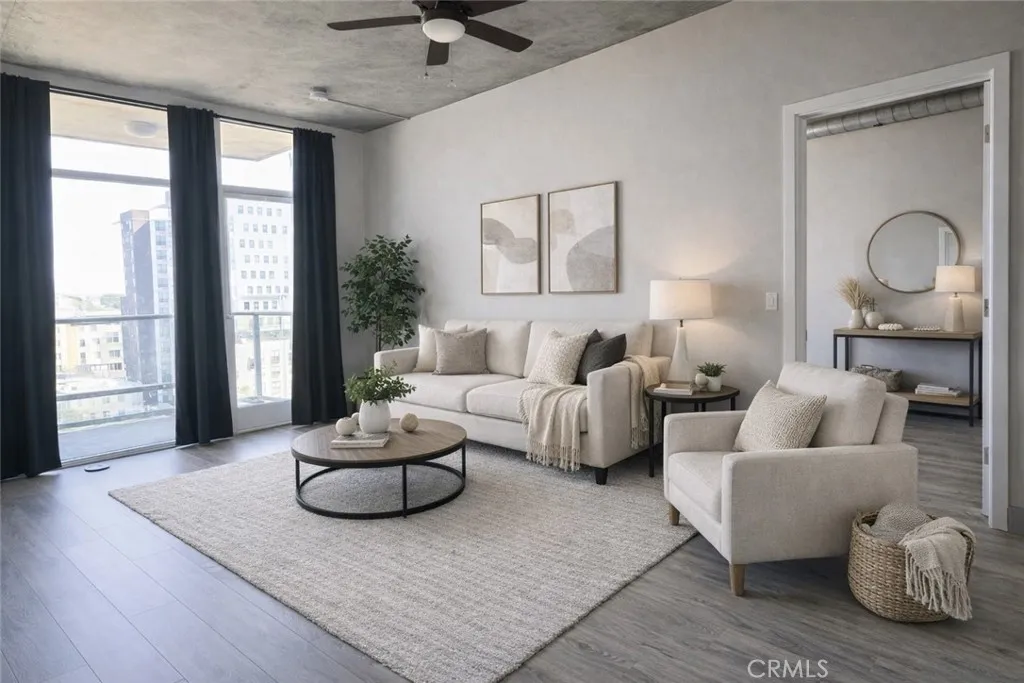 Experience elevated urban living in this stunning residence located in the highly sought-after Smart Corner community in downtown San Diego’s vibrant East Village. This spacious 1-bedroom, 1-bath condo offers approximately 748 square feet of modern living space with floor-to-ceiling windows that flood the home with natural light and showcase sweeping city skyline and Balboa Park views. The open-concept floor plan seamlessly connects the living, dining, and kitchen areas, creating the perfect setting for both everyday living and entertaining. Step out onto the private balcony to enjoy fresh air and panoramic urban scenery. The well-designed layout offers comfortable bedrooms, ample storage, and contemporary finishes throughout. Residents of Smart Corner enjoy resort-style amenities including a rooftop terrace with spa, BBQ areas, and breathtaking panoramic views of downtown San Diego. Additional highlights include a fitness center and secure building access. Ideally located just steps from the San Diego Trolley, this home offers unbeatable convenience with easy access to Petco Park, the Gaslamp Quarter, restaurants, shopping, and entertainment. This is downtown living at its finest—where lifestyle, location, and modern design come together.