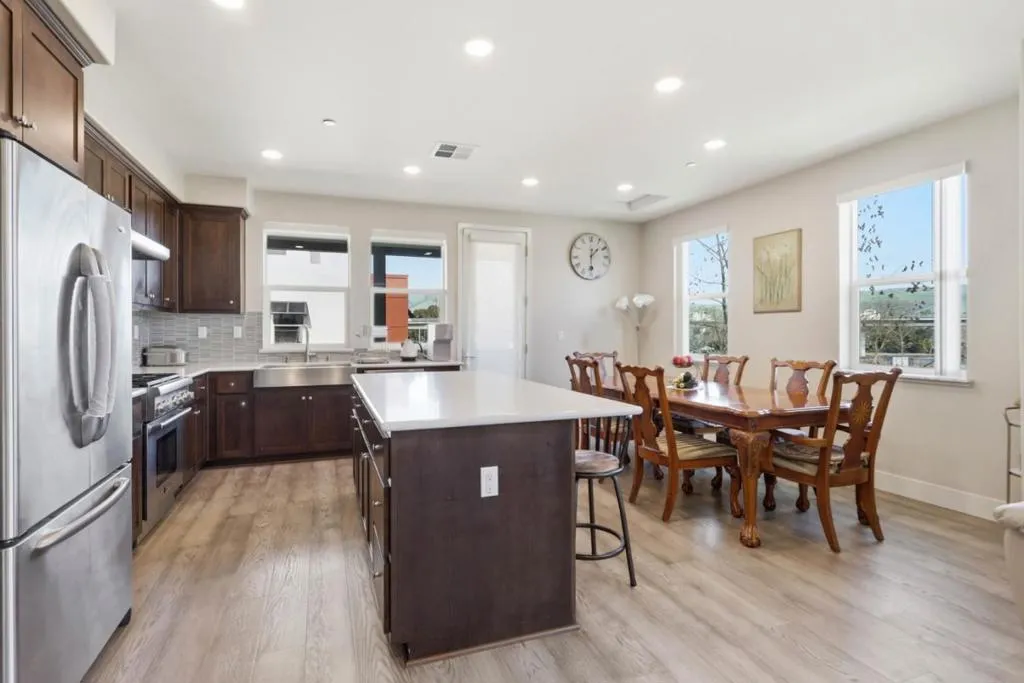 East Facing and Corner Lot! Walking distance to Mabel Mattos. Bright modern style in this move-in ready Milpitas home. This like-new home features an ideal open floorplan and elegant details throughout. Stylish gourmet kitchen includes granite counters and tile backsplash, stainless steel appliances, extensive storage, and large island with bar seating. Top floor unit, very quiet and no one above you!! Kitchen opens to formal dining area and spacious living room with wide-plank flooring, recessed lighting, and lots of natural light. Flex space off living room is perfect for a desk set up for your work-from-home needs. Large primary bedroom features private patio access, walk-in closet, & spa-like ensuite bath with tile shower, and dual sink vanity. In-unit laundry, attached 2-car garage, and large private patio. Great location close to Great Mall, Milpitas BART, VTA, fwy 880/680 for commuter ease. Top Rated School District- Mabel (10 of10), Ranch (9 of 10), and Milpitas High ( 9 of 10). No rental restriction. Won't last long!