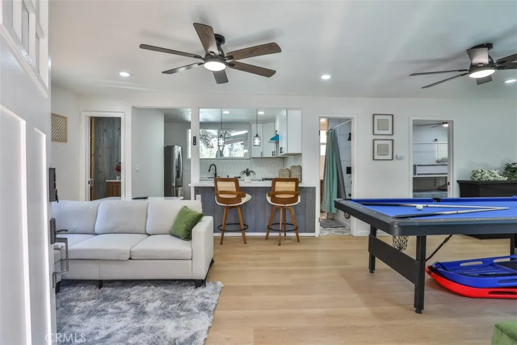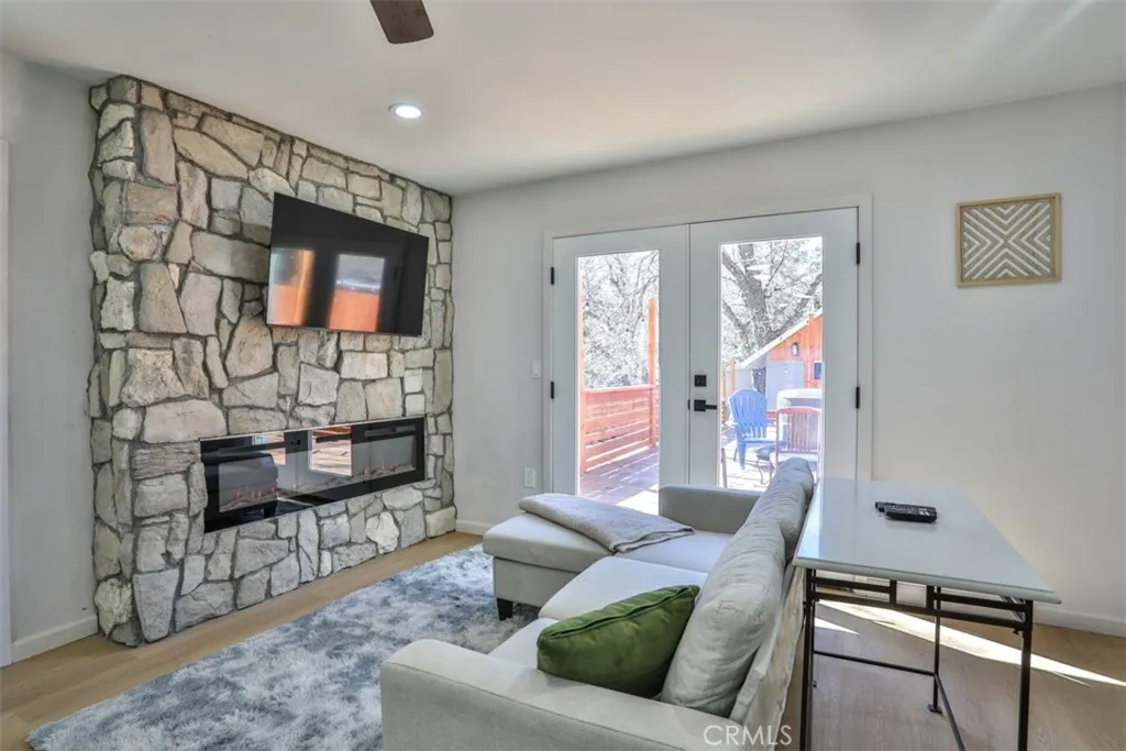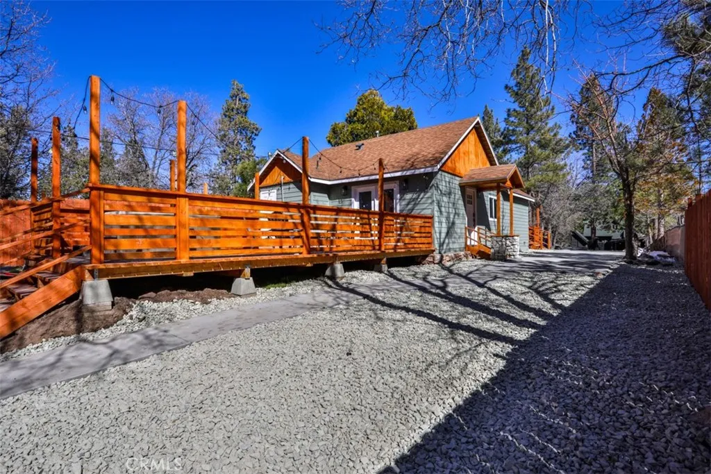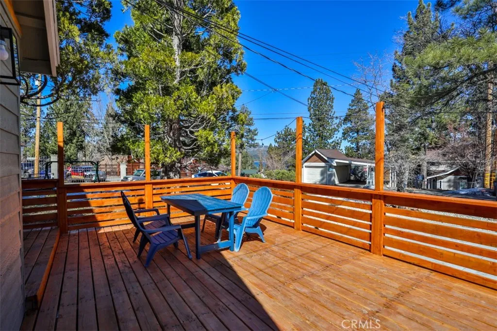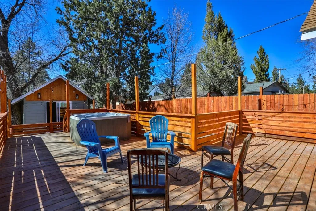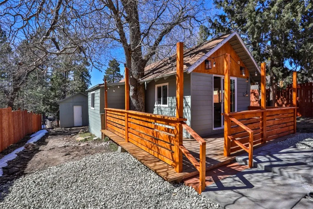 ***See Our 360 Degree Virtual Tour***Nestled in one of the highly sought-after areas of Big Bear, California, this charming single-story vacation property offers a rare opportunity for multigenerational living, rental income, or the perfect mountain retreat. Designed as a two-unit property "ADU" and approved for Short Term Rental, it combines comfort, style, and versatility in a setting that captures the essence of Big Bear living. As you approach the home, you are welcomed by a massive custom driveway providing parking for up to ten vehicles—ideal for hosting family and guests. The driveway leads to an expansive custom front patio, perfect for relaxing and enjoying the fresh mountain air. The primary front unit features a spacious two-bedroom, one-and-a-half-bath layout with a light and bright interior, fresh paint, quartz countertops, and custom cabinetry. The property has been extensively updated with new plumbing, electrical, fixtures, recessed lighting, ceiling fans, and upgraded switches and outlets throughout. A modern fireplace provides warmth and ambiance without the need for traditional logs. The bathrooms are beautifully upgraded, including a full bath and convenient powder room. The primary bedroom offers a sliding glass door that opens to the front patio, while the family room features French doors leading to a spacious rear deck complete with a relaxing jacuzzi and ample room for entertaining. A shared laundry room sits just off the deck for convenience. The rear unit offers a studio-style layout with a separate sleeping area, quartz countertops, custom cabinetry, new fixtures, and a fully upgraded bathroom. At the back of the lot, a large storage shed provides the perfect place for seasonal gear such as skis, snowboards, and lake toys. With room to personalize and approved for Airbnb use, this property is an excellent opportunity for both personal enjoyment and rental income. Conveniently located near shopping, dining, Big Bear City, Big Bear Lake, and local ski resorts, this is the ideal mountain getaway. Don’t miss the opportunity to own this versatile Big Bear retreat. Don’t miss the chance to own this versatile Big Bear retreat—where relaxation, recreation, and opportunity await. This amazing unit is completely renovated, from top to bottom, windows, exterior and interior and doors! Its even staged and all of the appliances seen stay as does the furniture and spa.
