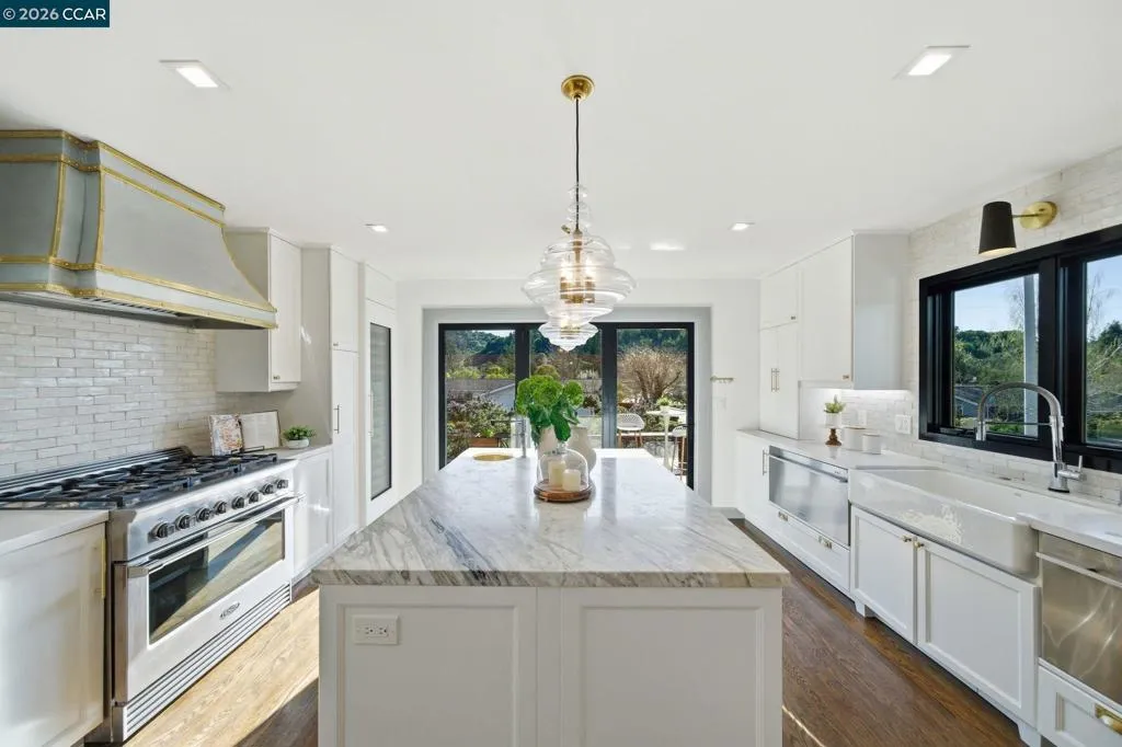 Fall head over heels for this beautifully remodeled, one-story 4 bedroom, 3 bath home. The impeccable design showcases a bright, open layout featuring a spacious living room with fireplace, an adjacent dining area, and an inviting family room—perfect for both everyday living and entertaining. The stunning kitchen serves as the heart of the home, with a large island, high-end appliances, sleek finishes, and direct access to a sunny deck—a wonderful spot for morning coffee or evening gatherings. Overlooking the backyard, the luxurious primary suite is a peaceful retreat, complete with a spa-like bath and incredible walk-in closet outfitted with built-in organization. 2 additional bedrooms share a darling updated hall bath. The 4th bedroom enjoys an en suite bath and provides flexibility for au pair, guests or a home office. Every detail of this home, including striking hardwood floors and custom cabinetry, has been carefully curated to evoke a modern style with practical functionality. Relaxing front and backyards are designed for enjoyment and play, along with a dedicated gardening area, ready for your green thumb. Set in a loved neighborhood near top rated K–8 schools, this turnkey home delivers the best of the Moraga lifestyle.