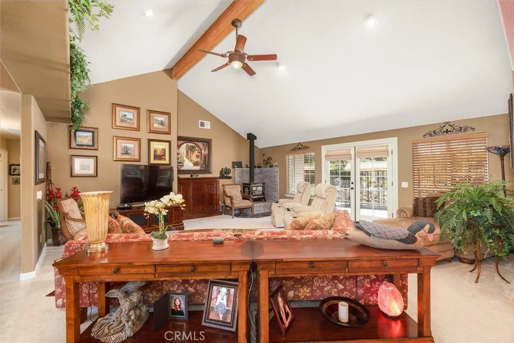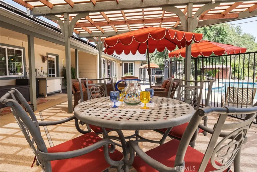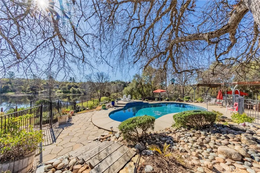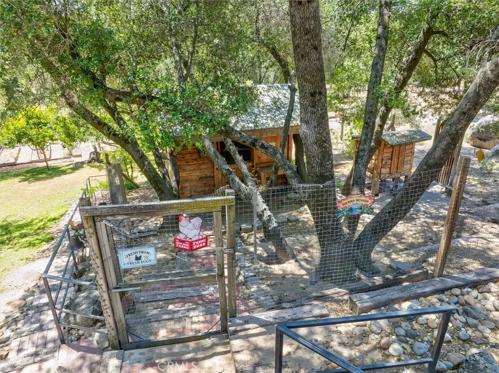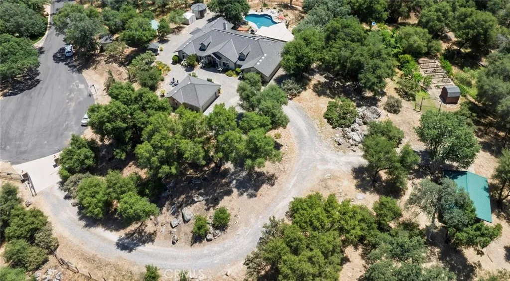 This private, creek-front property at the end of a peaceful cul-de-sac offers the perfect blend of luxury, sustainability, and outdoor living. Set on 3.75 usable acres, the 3,045 sq ft single-story home features vaulted ceilings with wood beams, dormer skylights, and an open-concept design filled with natural light. Featuring 4 bedrooms, 3 bathrooms, split floorplan with a room and bathroom at the opposite end of the house (perfect for multi-gen living or guests), a dedicated office, there's truly space for every need! The Kitchen is open to the Living Room and boasts black stainless appliances, a large island, and generous storage. Cozy wood-burning stove adds warmth and charm. Designed for efficient living with Dual HVAC systems, 39 OWNED Solar Panels on NEM 1, Private Well that produces 13.7 GPM as of 11/2025, a 2500 gallon Water Storage tank, a 3000 gallon Septic Tank that was Certified and Pumped 11/2025 (great for a future ADU), a whole-house water filtration system, and OWNED 500 gallon Propane Tank. Enjoy the Pebble Tec Pool with Waterfall (refinished in 2018), pond views, 8 fruit trees, mature landscaping, and historic Indian grinding holes near the Coarsegold seasonal creek. Outside you'll find a gated entrance, basketball hoop, detached garage, custom built covered dog kennel and chicken yard, additional animal pens, sheds, and a 20-ft sea container for storage. Just minutes from Hwy 41 for the commuters, and a short drive to Bass Lake and Yosemite for more outdoor fun! A rare opportunity to own a one-of-a-kind mountain sanctuary - Schedule a showing today!