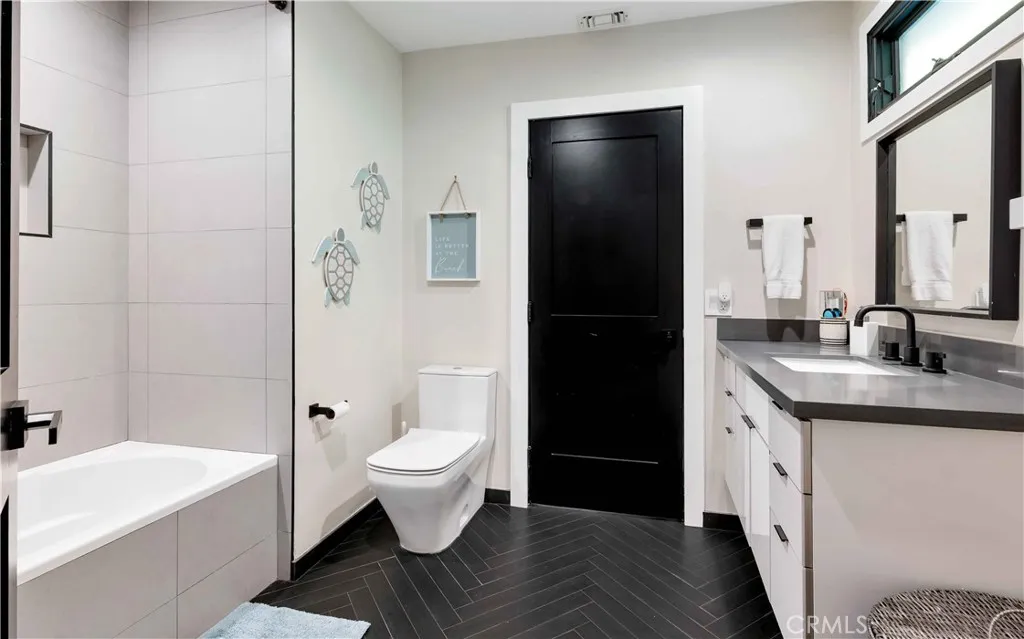 Located South of Ventura in Encino and zoned for award-winning Lanai Elementary School, this stunning single-story residence offers nearly 3,000 square feet of thoughtfully reimagined living space. Set back from the street for privacy, the five-bedroom, 3.5-bath home seamlessly blends sleek modern design with warm, inviting finishes and effortless indoor-outdoor living. At the heart of the home is a beautifully designed chef’s kitchen featuring striking Calcutta River quartz countertops, a dramatic waterfall island, seamless backsplash, custom cabinetry, premium Thermador appliances, and a 36" Wolf Dual Fuel Range. A custom glass-enclosed wine and spirits display is a striking focal point, perfect for entertaining, flanked with a built-in wine fridge and a matching beverage fridge. Wide-plank contemporary flooring, recessed LED lighting, a stylish corner fireplace, and six custom skylights fill the home with natural light while highlighting the carefully curated designer details throughout. The spacious primary suite offers a private retreat with abundant natural light and a spa-inspired bath complete with a dual walk-in shower, soaking tub, custom vanity, and generous walk-in closet. Two additional bedrooms share a Jack-and-Jill bath, while another bedroom is currently configured as an office. A fifth bedroom, privately positioned with its own entrance and bathroom, provides flexibility for guests, an in-law suite, or a dedicated workspace. Additional features include a separate laundry room, dual Nest thermostats, updated HVAC ducting, newer windows, custom exterior finishes, ethernet throughout the home and outside, and lush landscaping. The expansive backyard is designed for entertaining with a covered patio for al fresco dining, plus a built-in BBQ and outdoor refrigerator. A rare opportunity to enjoy stylish, turnkey living in one of Encino’s most desirable neighborhoods with convenient Westside access.