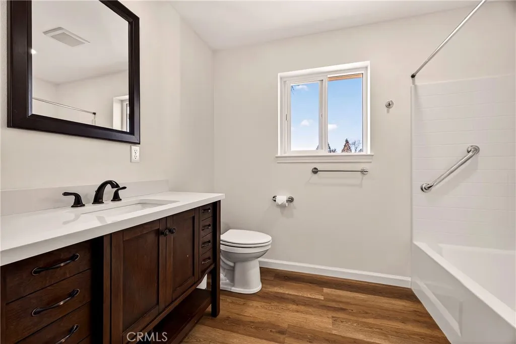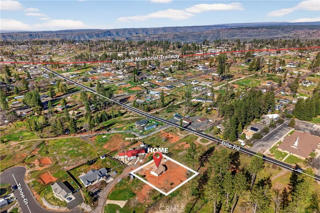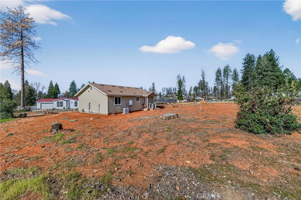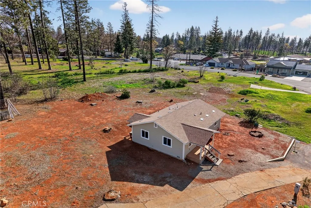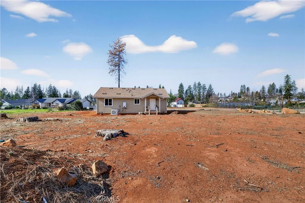 Central Paradise Location for this 2-bedroom 1 bath 2023 built SITE BUILT home at the end of the Cul-De-Sac. The spacious .41-acre lot is level and has room for a shop or garage. Insurance quote $888.86 per year no Cal Fair Plan. The covered concrete front porch welcomes you into the home. The main living area has the open concept with the living room, dining room and kitchen. The kitchen offers wood cabinets, stainless steel sink, 5 burner free standing oven/range and laminated counter tops. The home also offers dual pane windows with wood accent windowsills, central whole house fan, mini split efficient heating and air, cement board siding and a tankless water heater. The bathroom has an upgraded wood vanity, solid surface countertop and tub/shower combination. Both bedrooms are spacious and have upgraded ceiling fan / light fixtures. The refrigerator, washer and dryer are included with the home. Barely lived in very clean. This home is ready for a new Paradise resident.