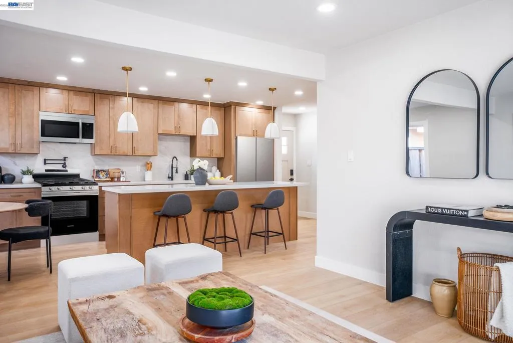 Stunning fully renovated Fremont home in the prestigious Irvington school district with permitted upgrades throughout. This move-in-ready property features wide-plank LVP flooring, recessed lighting, new baseboards, new interior doors, updated closets, and fresh interior and exterior paint. The beautifully remodeled kitchen showcases quartz countertops, a full quartz backsplash, and brand-new stainless steel appliances. Both bathrooms have been fully updated with designer tile finishes, while additional improvements include brand-new windows, upgraded main electrical and subpanel, epoxy garage floors, refreshed front and backyard landscaping, and an upgraded garage door. Stylish, modern, and turnkey, this is a rare opportunity in one of Fremont’s most desirable locations.