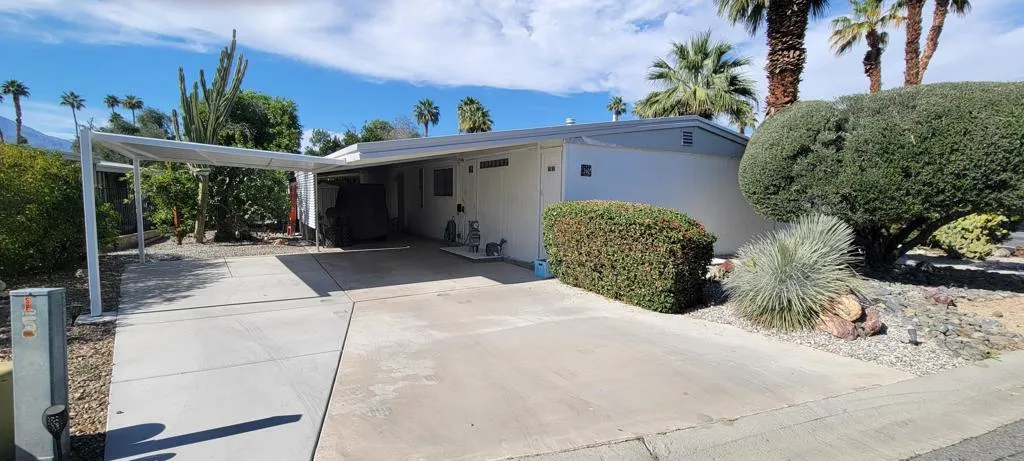 For gorgeous views and spacious living.....look no further! Located on the back 9, 12th hole, this beautiful 2 bed/2 bath home has been upgraded and is waiting for you! Remodeled features: 2019 - Bedrooms, primary bath, dining/livingroom flooring. 2021 - guest shower and toilet, utility sink in laundry room, refrigerator, oven, stove, backsplash, stove hood and microwave. 2022 - AC, custom primary shower, recessed lighting and water heater. Bonus of side by side covered parking, Beautiful space indoor and out. Added bonus of a fenced in dog area with artificial turf for your furbaby's safety. Sold partially furnished per inventory. Please note, the diningroom chandelier is not included, Seller will either replace or credit buyer for replacement chandelier. Homeowners enjoy a discounted golf rate for the executive 18-hole public golf course. Nick's Bistro and bar is a local favorite in the community with live music, karaoke night and amazing food. You can dine indoors or on their beautiful outdoor lighted patio with firepit for chilly nights. If activities are your thing.....Date Palm CC offers several to choose from, something for everyone! Located near Hwy 111, shopping, dining and entertainment. Check this one out before you miss it!