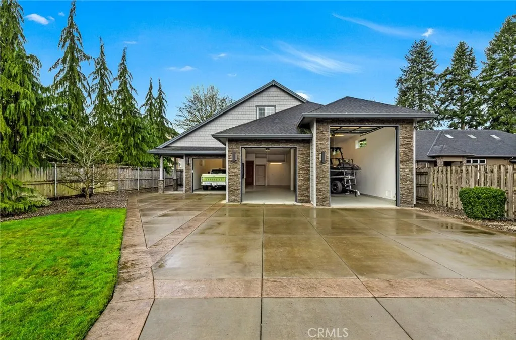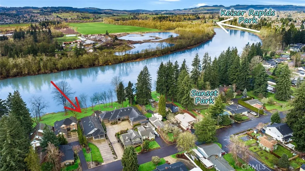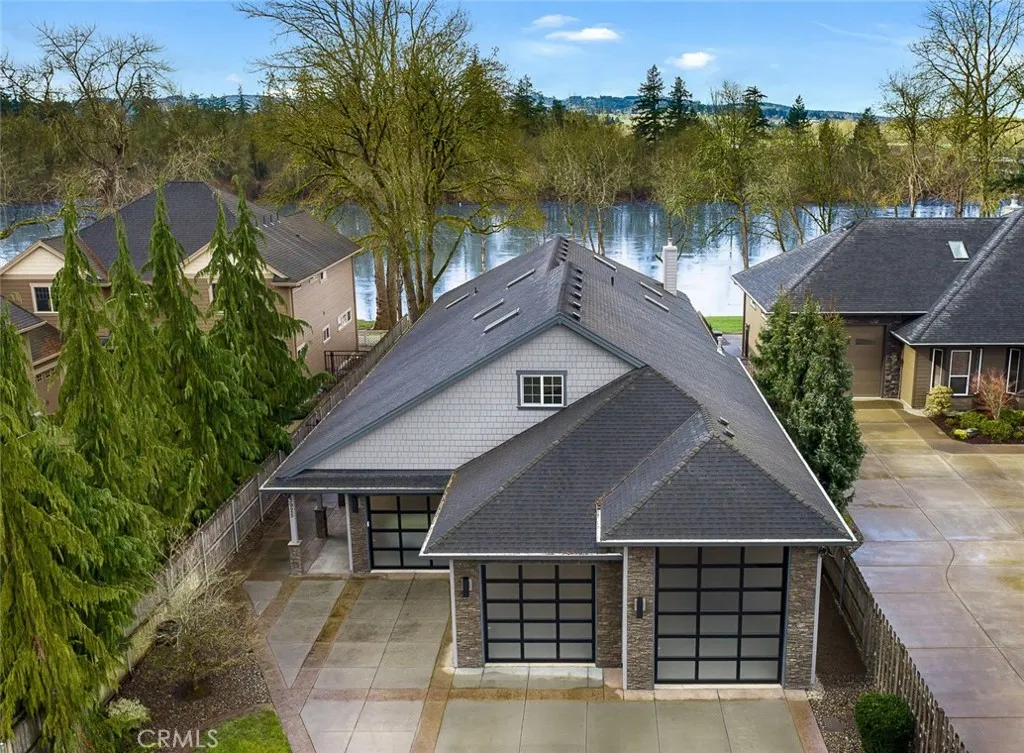 RIVERFRONT PROPERTY! Positioned along a quiet stretch of the Willamette River, this Keizer property offers a rare combination of space, privacy, and connection to the outdoors. Set on over half an acre with DIRECT WATERFRONT ACCESS, the backyard feels expansive and secluded while remaining just minutes from town. The heated 3 bay Garage is approximately 1800 sq ft. The largest bay is 55’ deep with a 12’ tall door. A generous covered patio extends the living area outdoors ideal for entertaining or unwinding in a true Northwest setting. The long stamped concrete driveway offers abundant parking and leads to an oversized attached garage with exceptional flexibility. Near Keizer Rapids Park and Salem’s riverfront amenities, this is riverfront living with substance and presence. Built in 2010, the home provides nearly 3,000 square feet of well designed living space with wide 36 inch doorways and an accessible layout.