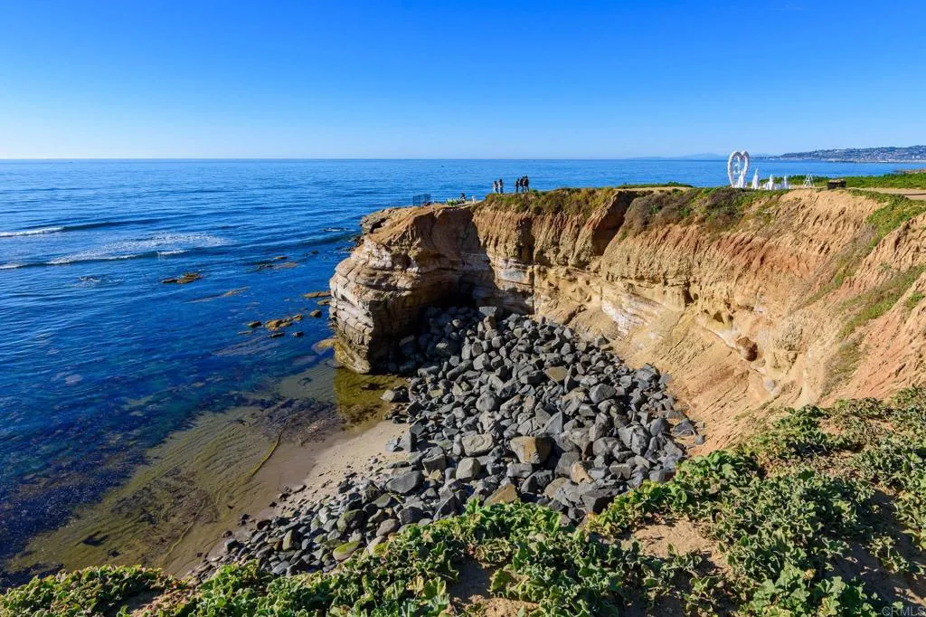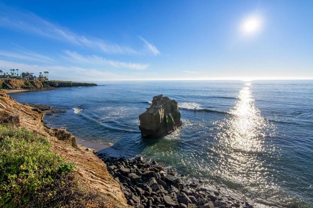 Located in the highly sought-after Sunset Cliffs / Point Loma coastal community, this spacious 3- bedroom, 2-bath residence offers approximately 2,665 sq ft of living space on a 7,200 sq ft lot with peak ocean views. The home blends classic coastal character with thoughtful upgrades, featuring vaulted ceilings, skylights, and an open, light-filled layout designed for both comfortable living and effortless entertaining. The main level features expansive living areas, including a welcoming living room, formal dining area, and an inviting kitchen with an Oversized center island with bar seating, perfect for morning coffee, breakfast, and entertaining. Built-in wet bar with granite counters, custom cabinetry, glass display doors, and beverage refrigerator—ideal for entertaining. The remodeled kitchen showcases granite countertops, abundant cabinetry, and premium Bosch, GE, and Dacor stainless steel appliances, Flowing seamlessly to the nearby outdoor deck and backyard, offering a peaceful outdoor setting for relaxing, dining, and entertaining A separate upstairs family room retreat adds valuable flexibility and privacy, complete with vaulted ceilings and Direct access to a private balcony overlooking beautiful ocean views and the surrounding coastal neighborhood.. This elevated space is ideal for a media lounge, game room, guest retreat, or home office, offering a quiet escape from the main living areas. The primary suite is privately situated within the home and offers a spacious retreat with an adjoining bath, while two additional bedrooms provide comfortable accommodations for family, guests, or workspace needs. The living room features high ceilings and an expansive open layout that creates a bright and welcoming atmosphere. Large windows bring in abundant natural light, while elegant tile flooring extends throughout the main living areas. Recessed lighting adds a clean, modern touch, and French doors provide architectural character while connecting seamlessly to adjacent living spaces, making the room ideal for both everyday living and entertaining. Outdoor living spaces enhance the home’s coastal lifestyle appeal, featuring a large entertaining deck overlooking the landscaped backyard. The yard offers mature landscaping, garden areas, and fruit trees, creating a peaceful outdoor setting, along with convenient alley access that provides flexibility for additional parking, storage, or future possibilities. Additional highlights include upgraded plumbing and electrical systems and a whole-home point-of-entry water softener system. Additional features include a detached two-car garage, brick paver walkways and outdoor sitting areas, and beautifully maintained grounds. Ideally located just minutes from Sunset Cliffs Natural Park, the Pacific Ocean, coastal trails, beaches, restaurants, and shops, this property offers a rare opportunity to enjoy the relaxed elegance of Point Loma’s premier coastal lifestyle