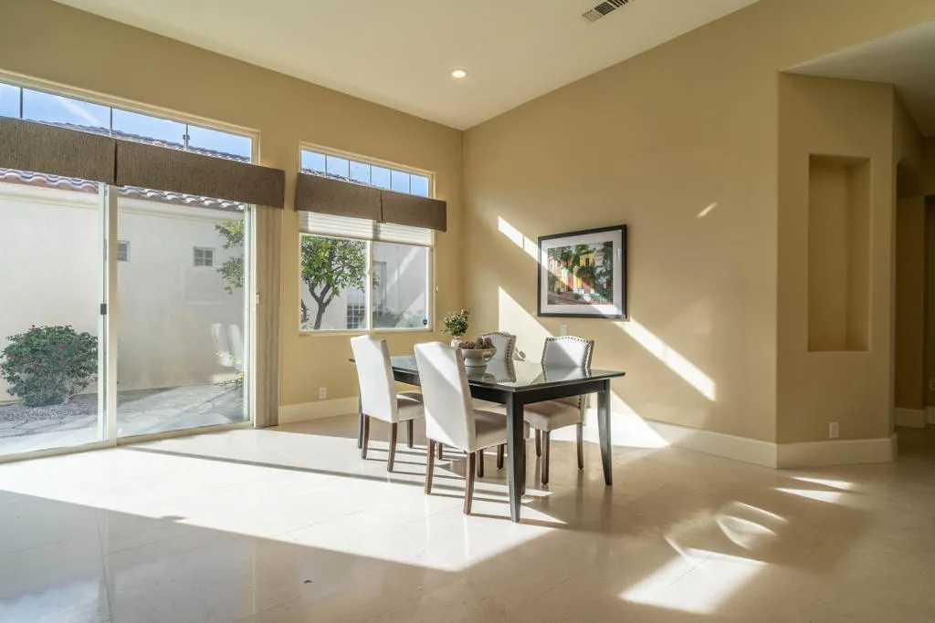 Experience stunning golf course views and the ultimate indoor-outdoor lifestyle in this spacious open-concept home. Featuring three bedrooms and two and one-half bathrooms, this retreat is designed for comfort and relaxation. Enjoy sunny days lounging by your private pool or unwind under the covered patio while taking in the beautiful desert scenery. Whether you're entertaining guests or simply enjoying a peaceful evening at home, this property offers the ideal blend of elegance and leisure--ready for you to move in and start enjoying right away.