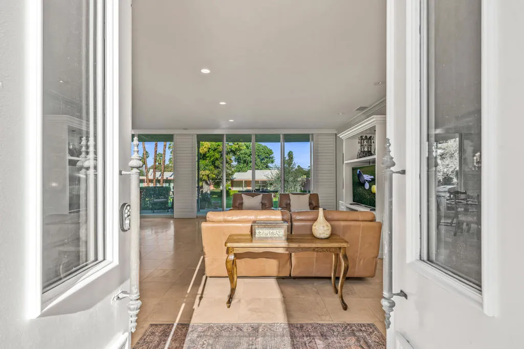 Best entry opportunity at Marrakesh--beautifully remodeled Expanded A-Plan with rare attached casita, move-in ready and thoughtfully priced to help offset the one-time club affiliation fee required for all homeowners.Welcome to Marrakesh Country Club, one of Palm Desert's most architecturally distinctive gated communities. In late 2025 the community was designated a historic district by the Palm Desert City Council, recognizing its cohesive Hollywood Regency design and cultural significance. Created by renowned architect John Elgin Woolf, Marrakesh is celebrated for its iconic pink residences, elegant symmetry, and timeless architectural style. This beautifully remodeled Expanded A-Plan residence offers generous living space, refined finishes, and seamless indoor-outdoor living. Enter through classic white double doors into a dramatic living room with soaring 10-foot ceilings, travertine flooring, and expansive sliders opening to tranquil greenbelt views with mountain glimpses beyond. The updated kitchen features quartz countertops, stainless-steel appliances, custom cabinetry, and a concealed walk-in pantry with a second refrigerator, ideal for effortless entertaining.The primary suite is a true retreat, complete with a private office nook and a spa-inspired bath finished in travertine marble with a walk-in shower. Additional features include a powder room and full laundry room. A rare highlight is the attached private casita with its own entrance, ensuite bath, and oversized closet--one of only ten homes in Marrakesh with this configuration, perfect for guests, creative space, or a private office. Outdoor living includes a front patio framed by mountain views and a rear terrace overlooking the lush greenbelt, offering privacy while safely set back from golf play. Set across 155 acres of beautifully landscaped grounds, Marrakesh features 364 residences, 14 pools, and an opulent clubhouse recently transformed through a $15 million renovation, creating one of the desert's most stylish and socially vibrant club communities Move-in ready and easy to show--an exceptional opportunity to own in Palm Desert's newly designated historic Marrakesh Country Club.