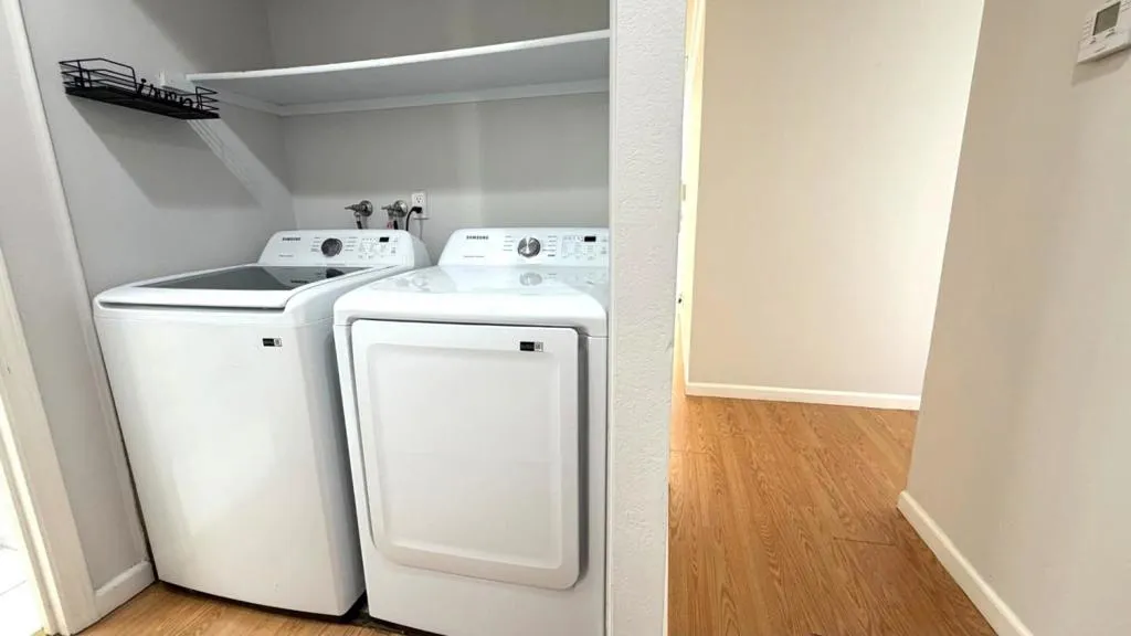 Freshly remodeled and move-in ready, this beautiful ground-floor condominium is nestled in the charming Alexian community surrounded by mature trees and a resort-style swimming pool. The spacious 2-bedroom, 2-bath home features modern hardwood floors and a bright open living and dining area with sliding doors leading to a private patio, ideal for relaxing or entertaining. The updated kitchen offers stylish quartz countertops, a designer backsplash, and abundant cabinet space. Additional highlights include in-unit washer and dryer and two dedicated parking spaces for added convenience. Ideally located within walking distance to Regional Medical Center with easy access to nearby amenities and major commute routes.