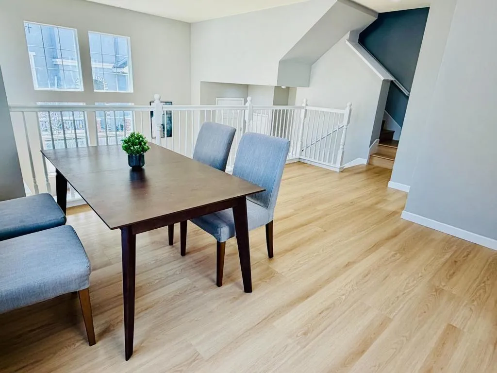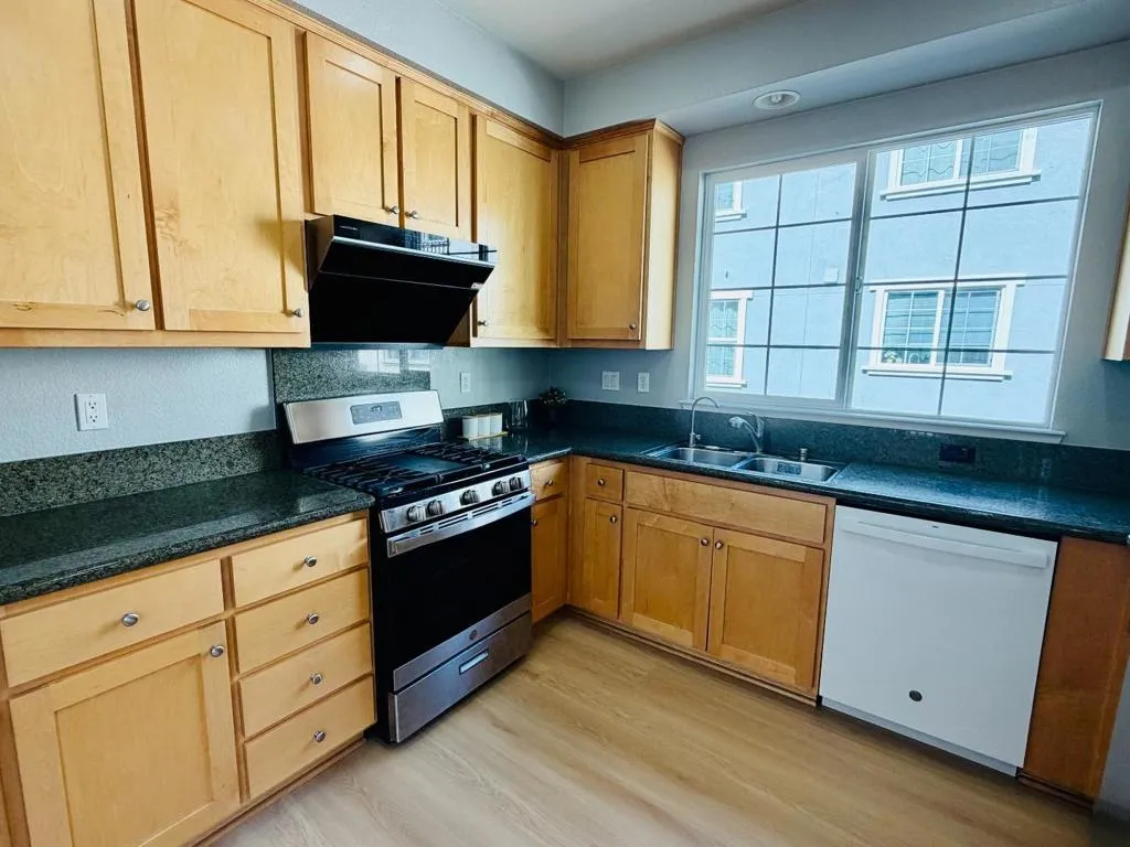 Welcome to this rare, sun-drenched end-unit townhome in Sunnyvales highly sought-after Danbury Place, offering 4 bedrooms, 3 bathrooms, and 1,727 sq. ft. of elegantly updated living space. Bathed in natural light from extra East-facing windows, the home boasts a spectacular South-facing living room featuring soaring vaulted ceilings, a cozy fireplace, and massive two-story windows. Enjoy turn-key perfection with brand-new flooring flowing seamlessly throughout the open-concept layout, as well as a freshly finished epoxy floor in the attached two-car garage. The radiant, South-facing primary suite serves as a private retreat complete with a spa-like en-suite bathroom featuring dual vanities and a large soaking tub. With access to a sparkling community swimming pool and an unbeatable Silicon Valley location just minutes from the Google Campus, Seven Seas Park, major tech shuttles, and highways, this home perfectly blends modern luxury with ultimate convenience.