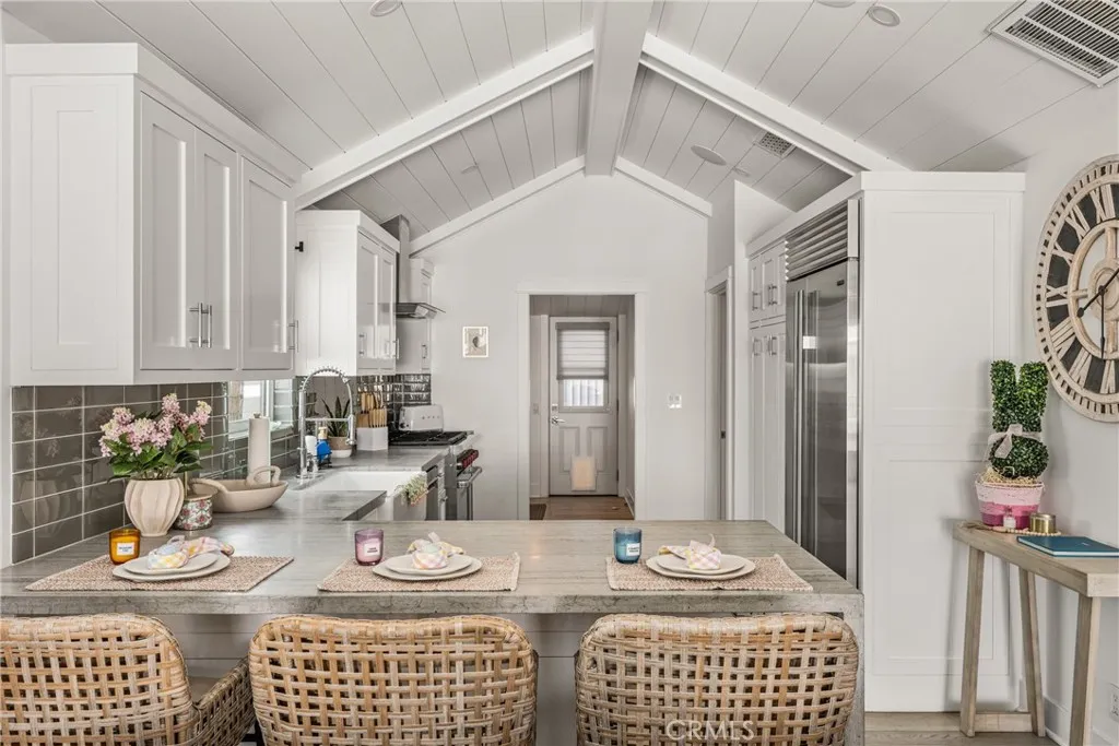 Located in a prime setting on the prestigious Balboa Peninsula, this beautifully custom beach home was completely remodeled in 2019 with new plumbing, electrical, windows, and HVAC. Light, bright, and full of charm, the home offers an inviting coastal aesthetic with a relaxed beachside vibe. Just down the street from the bay and only a few blocks from the sand, surf, the Balboa Fun Zone, and the iconic Balboa Pier, the location provides the ultimate coastal lifestyle—perfect as a weekend retreat or full-time residence. The extended front porch captures views of the bay and refreshing ocean breezes, creating the perfect setting to relax or entertain. Glass front doors open to a welcoming living room with vaulted ceilings, a cozy fireplace, and beautiful whitewashed flooring throughout. The chef’s kitchen features polished limestone waterfall-edge countertops, generous storage, and high-end appliances including a Wolf range and Sub-Zero refrigerator. Just off the kitchen is a convenient laundry and butler’s pantry area. The primary suite offers a walk-in closet and a beautifully designed bathroom, while the secondary bedrooms are generously sized. The main bath is thoughtfully finished with stylish tile and quality fixtures. A well-designed floor plan maximizes space while maintaining an airy, open feel throughout. The private backyard is ideal for entertaining, featuring a newer spa, built-in barbecue, outdoor refrigerator, and a fully enclosed outdoor shower. Additional highlights include a remote-controlled awning and retractable gate. Don’t miss this exceptional opportunity to own a piece of the California coastal dream in one of the most sought-after communities in Newport Beach.