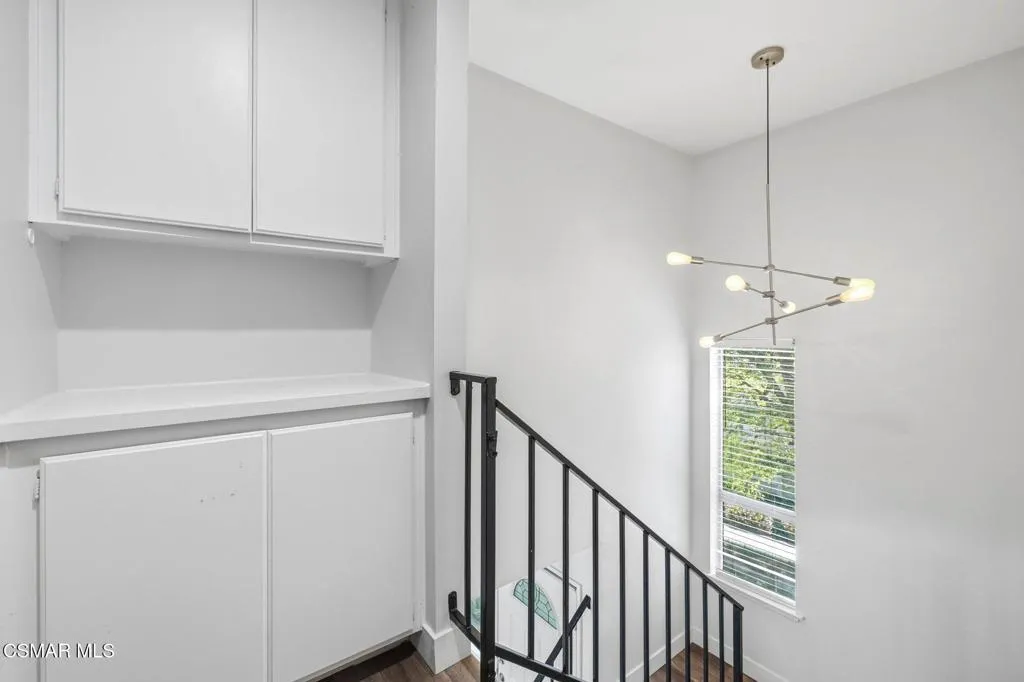 Tucked away in one of Moorpark's most beautiful neighborhoods, this private, attached end-unit single-family residence within a Planned Unit Development (PUD) offers a serene setting surrounded by mature trees, lush greenbelts, and well-maintained streets. Ideally located within the desirable Varsity Park Villas, the home sits at the top of the neighborhood, providing peaceful surroundings, scenic views, and quick, easy access to freeways, shopping, dining, hiking trails, parks, and Moorpark College. With only one shared wall, this residence lives much like a detached home, offering exceptional privacy and comfort.This home offers a detached two-car garage, first-floor laundry with washer and dryer included, and modern finishes throughout. The updated kitchen features shaker-style cabinetry, newer Samsung stainless steel appliances (refrigerator included), chic lighting, smooth ceilings, and oak vinyl flooring. The well-designed layout includes a decorative fireplace, a family room opening to a private patio, and a first-floor bedroom with an adjacent powder room, perfect for guests or flexible living.Upstairs, the spacious primary bedroom offers scenic views and a stunning, highly stylish en-suite bath featuring a sliding barn door and a generously sized closet. The second upstairs bedroom also enjoys mountain views and its own full bathroom.The rear patio is open and inviting--perfect for morning coffee or unwinding in the evening. A tall, mature tree with a swing and soft string lights creates a peaceful outdoor retreat, with direct access to the detached two-car garage.HOA amenities and services include trash service, exterior maintenance and paint, roof coverage, master insurance including fire and earthquake coverage, beautifully maintained greenbelts and common areas, two pools, and two clubhouses. This is a rare opportunity to own an exceptional home in a quiet, well-kept community close to everything Moorpark has to offer.