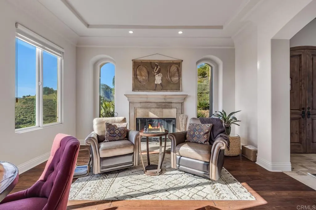 The privacy on this hilltop of over 6 acres will ensure a calm and tranquil lifestyle away from it all and yet only minutes to commute corridors. Superior quality and attention to detail are evident throughout. The greatroom with adjacent kitchen and eating area opens to a covered patio with fireplace that extends to inviting pool and spa overlooking the views beyond. Southern California indoor to outdoor living at it's best. The kitchen with expansive island, dual dishwashers, wine fridge, 6 burner cooktop and butler pantry will provide interaction with guests while entertaining. There is an additional space adjacent to garage for a bonus room or workshop. Don't miss the nearby hiking trails along the Santa Margarita River.