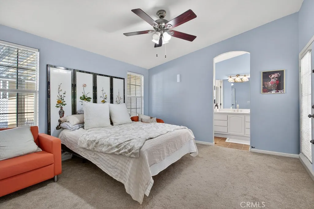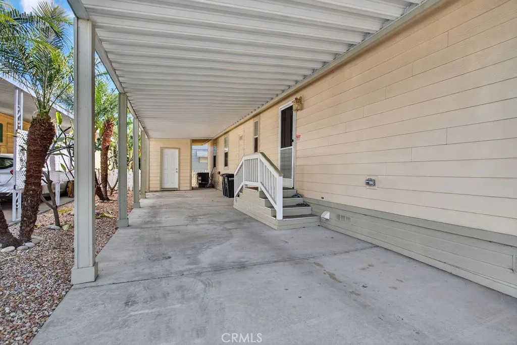 Highly sought after 55+ community of the El Toro Estates. Where the Second person can be 18 years or older to reside in the park. This Wonderfully maintained manufactured home was built in 2006 and is positioned on a corner lot with swaying palm trees and a nicely landscaped yard. This conveniently located home in the heart of Orange County is highly desired. Step inside this lovely layout, including 2 bedrooms and 2 baths with newer carpeting, Large Vaulted ceilings and lots of windows to flood the home with light as you enjoy the breezes. This home also has a large eat in kitchen and abundance of cabinets and quartz counter tops with a very large dining area to host your family and guest. Both bedrooms have ceiling fans and great separation for privacy. Both outdoor areas have Trex decking for easy maintenance and pet friendly fenced in yard. A large driveway and a custom storage shed and newer roof. As a resident of this Great park community, you'll have access to a wealth of amenities, including a clubhouse with monthly social events. A very large swimming pool and Spa, exercise room, shuffleboard courts, BBQ areas, and outdoor spaces. Don't miss this well-appointed home where every aspect of the home has been carefully crafted to cater to the discerning homeowner.