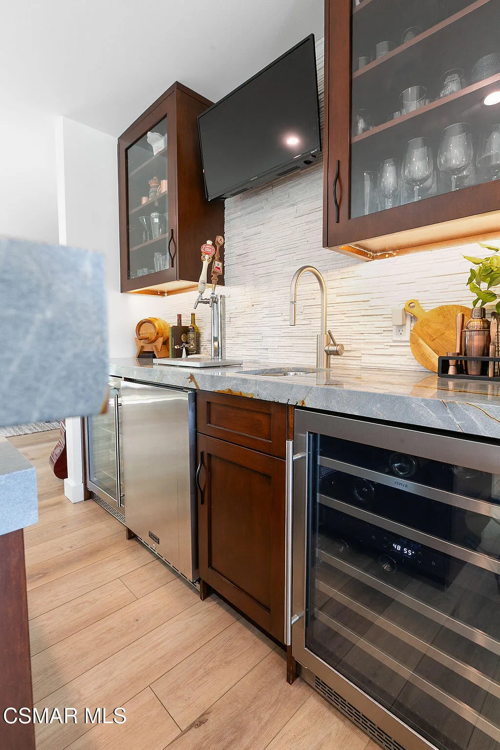 Strikingly REMODELED hilltop home with PRIVACY and VIEWS! At the end of quiet cul-de-sac, this one-of-a-kind pool home in the scenic neighborhood of Kevington is an entertainer's dream. Enjoy panoramic views of the canyon from the brand-new front deck, from the stunning kitchen and dining area, and from the primary bedroom and two guest bedrooms. Enter through double glass doors to a REIMAGINED 1st floor boasting incredible natural light, luxury vinyl floors, recessed lighting, Shaker-style single-panel doors, and newer grid-less windows & sliders. The newly-remodeled kitchen is a chef's delight w/ custom cabinets, integrated Subzero, Thermador stainless steel appliances including double oven and 6-burner cooktop, sintered stone countertops and backsplash, island with huge ROHL farmhouse sink, and counter seating. Enjoy meals inside or on the Trex deck, accessed from two sliders off of the kitchen or dining area. The sophisticated, custom wet bar is the perfect hosting spot, complete with beer tap, beverage fridge, wine fridge, marble countertop, designer backsplash, mounted TV, and bar seating. A cozy living room has sliding doors to the back patio with firepit and trellis. A gorgeous full bathroom completes the main level and has an exquisite French limestone vanity with slot drain and shower stall. Upstairs, the primary bedroom features a walk-in closet and French sliders to a large balcony to take in the breathtaking views or to overlook the side yard and pool area. The primary bath has an updated shower w/ glass enclosure & custom vanity. Three spacious secondary bedrooms have wall closets and recessed lighting - 2 of these have front balconies w/ views! The hall bath has shower-over-tub and large vanity. The private side yard features pool/spa, flagstone patio, and terraced area perfect for trampoline, play structure, or sitting area. Besides its stellar location near hiking/biking trails and award-winning schools (including MATES Elementary), tenants can appreciate the new roof, new HVAC, new water heater, new plumbing, and new electrical panel. Partially-furnished if desired. California living at its best!