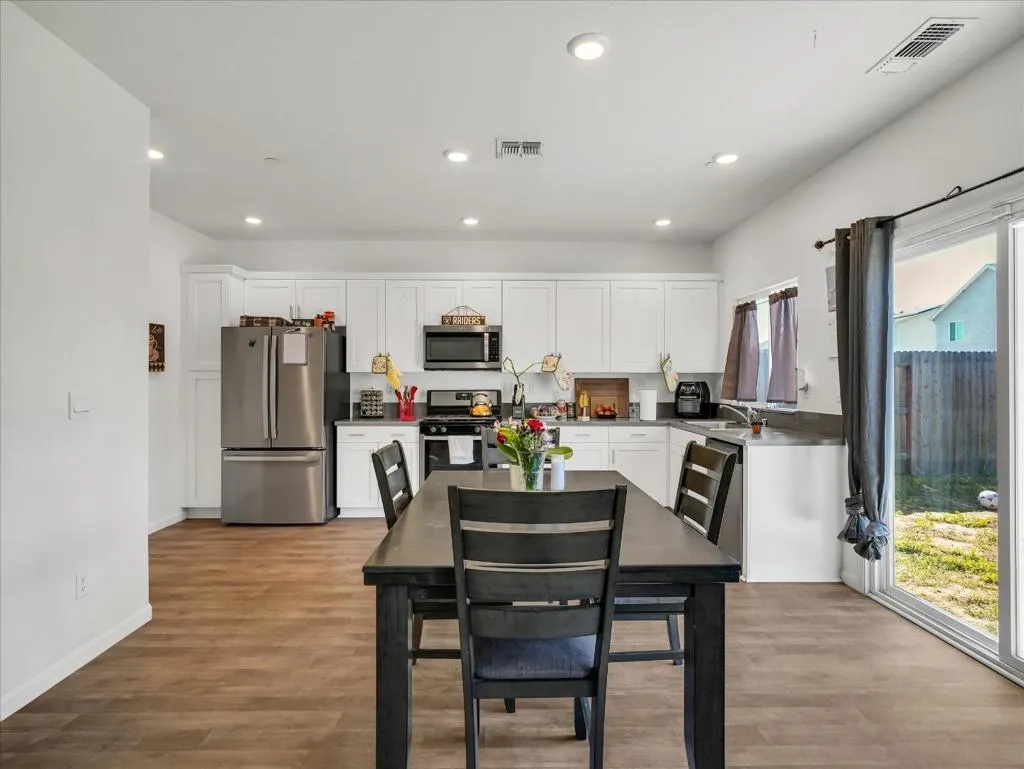 Welcome to 1415 Crimson Ln, Manteca, CA 95336 a modern single-family home offering comfort and style. Solar paid off !!! Built in 2022, this residence boasts 4 bedrooms and 2.5 bathrooms across 1,678 square feet of living space; The open-concept layout creating a spacious and inviting atmosphere. The gourmet kitchen is equipped with white shaker-style cabinets, quartz countertops in iced-gray, stainless steel appliances, Etc. Upstairs, you'll find generously sized bedrooms, including a master suite with a walk-in closet and a luxurious en-suite bathroom. The home is adorned with luxury vinyl plank flooring throughout and includes smart features for modern living, two-car attached garage and a landscaped front yard. Located in Manteca's desirable North Main neighborhood that offers convenient access to local schools, shopping centers with a gorgeous Community park near 99 & 120 HWY Perfect for commuters.