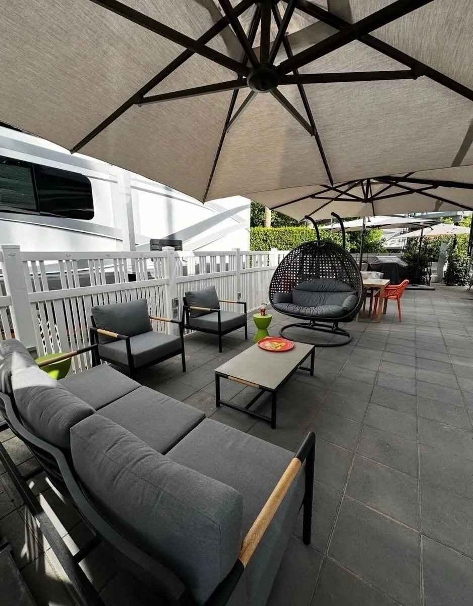 Lot 724 offers an exceptional living experience, beginning with its integrated, high-quality outdoor shading structures that significantly enhance the usability and comfort of the exterior spaces. A meticulously maintained kitchen, in pristine, near-new condition, offering a contemporary and fully functional culinary experience. The property's curb appeal is further enhanced by its recently added $5K in newly planted trees positioned at both the front and rear of the lot. These plantings are set to mature, promising increased privacy and contributing to the overall aesthetic charm of the lot.A key highlight of Lot 724 is its prime location, offering unparalleled access to community amenities. Owners will benefit from being within a comfortable walking distance to the ES clubhouse and the golf course's starter shack. Furthermore, the convenience extends to satellite D , which includes a swimming pool, a relaxing spa, well-maintained restrooms, and essential laundry facilities, all just a short stroll away.*Outdoor furniture pictured included in sale with the exclusion of the outdoor chair swing.
